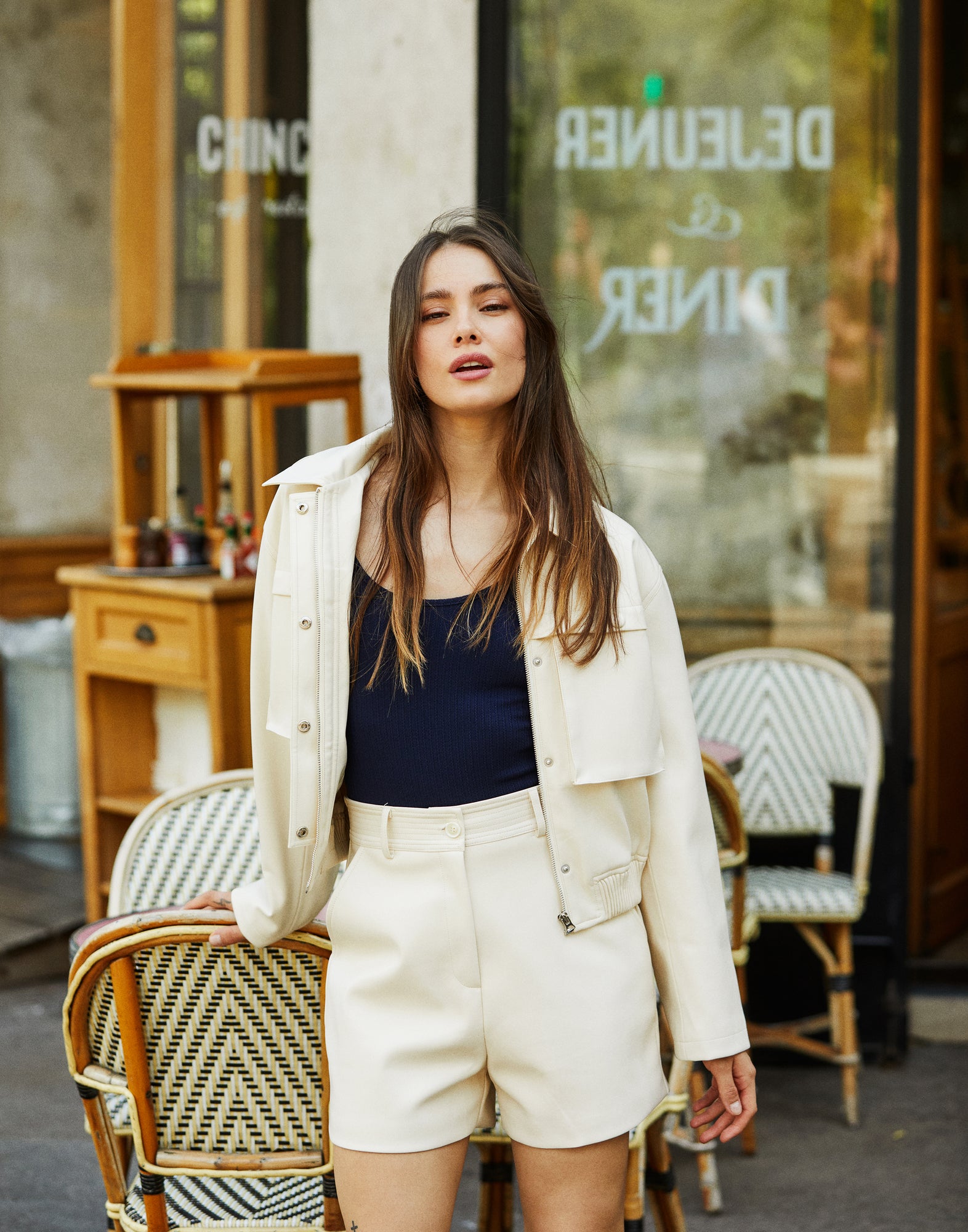Imaginez-vous dans l'ensemble en cuir crème, un véritable indispensable qui incarne à merveille l'élégance décontractée. Que ce soit pour une virée en ville ou une soirée entre amis, cette tenue allie avec brio sophistication urbaine et confort, offrant une polyvalence à toute épreuve.