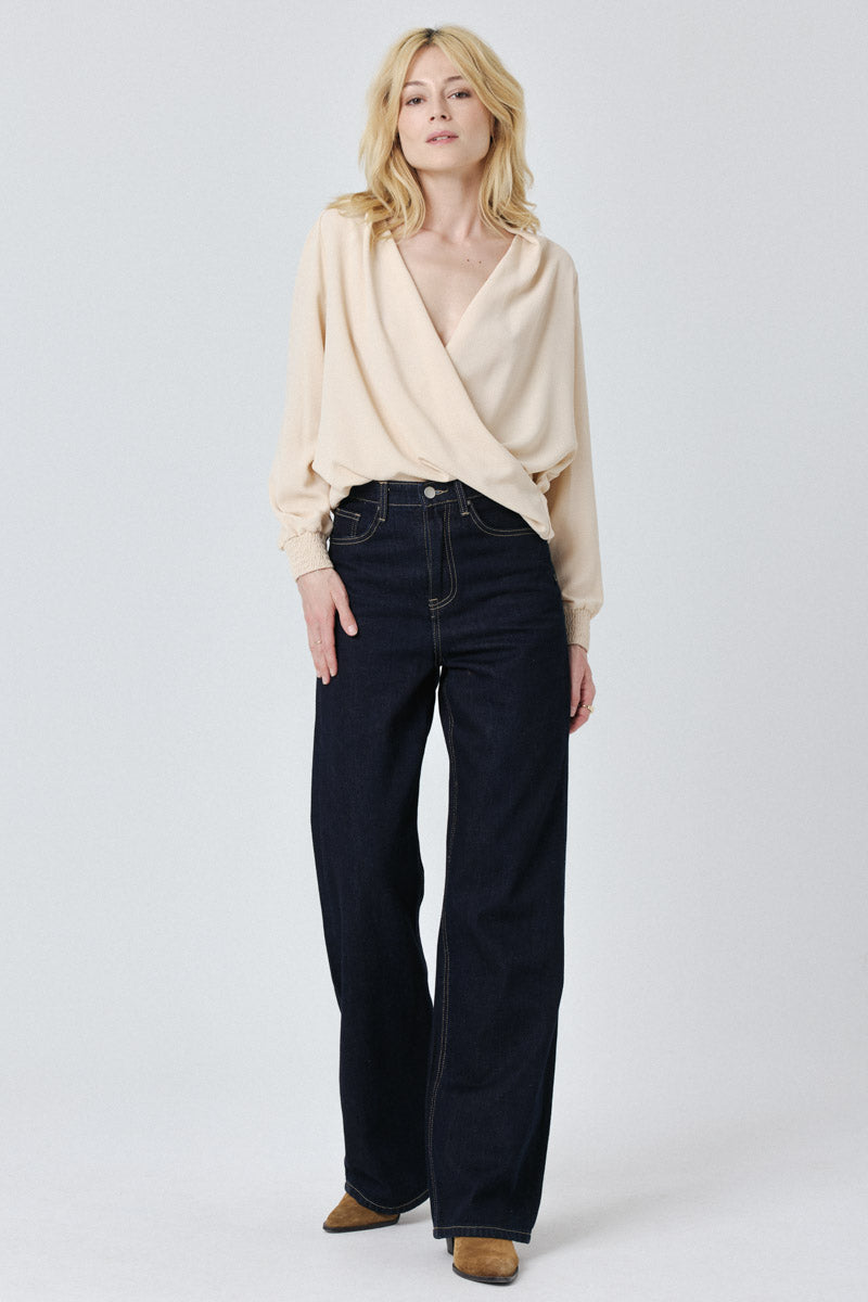 Blouse drapée élégante. Parfaite pour une allure sophistiquée et moderne.