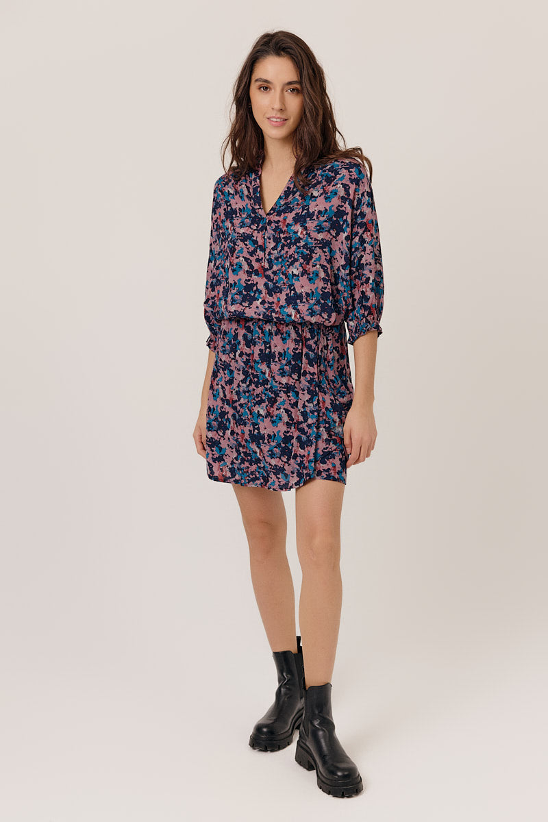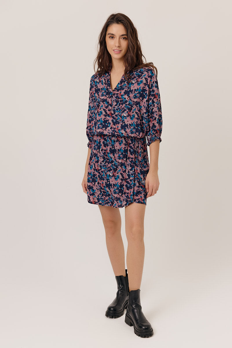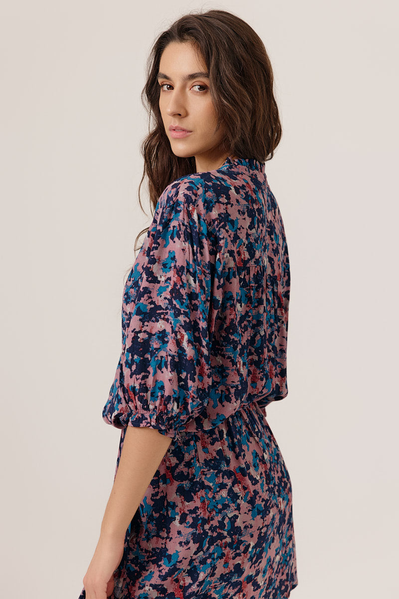 Blouse imprimée dans les tons bleu et rose. Une pièce forte à enfiler sans réfléchir.
