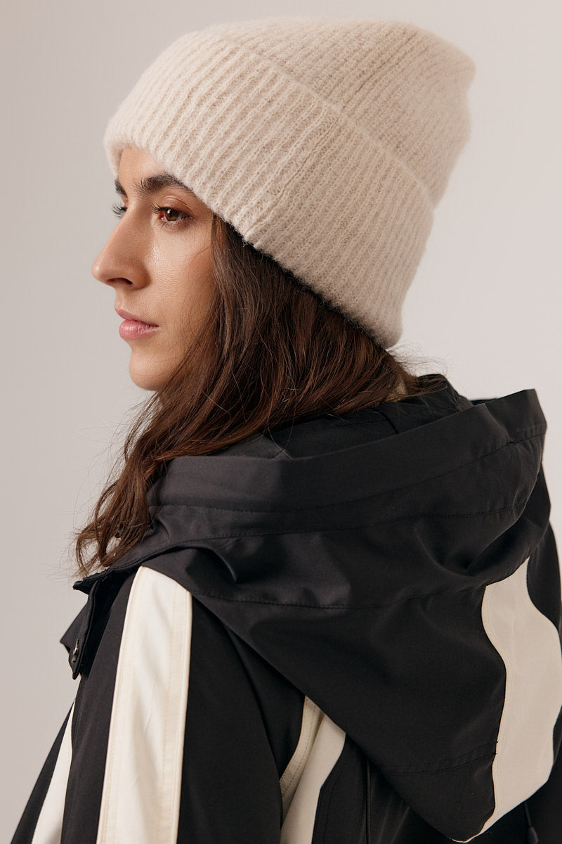 Bonnet côtelé à revers dans une matière douce et moelleuse. Parfait pour garder la tête bien au chaud avec style.