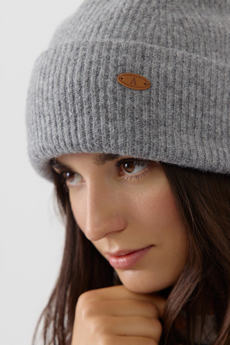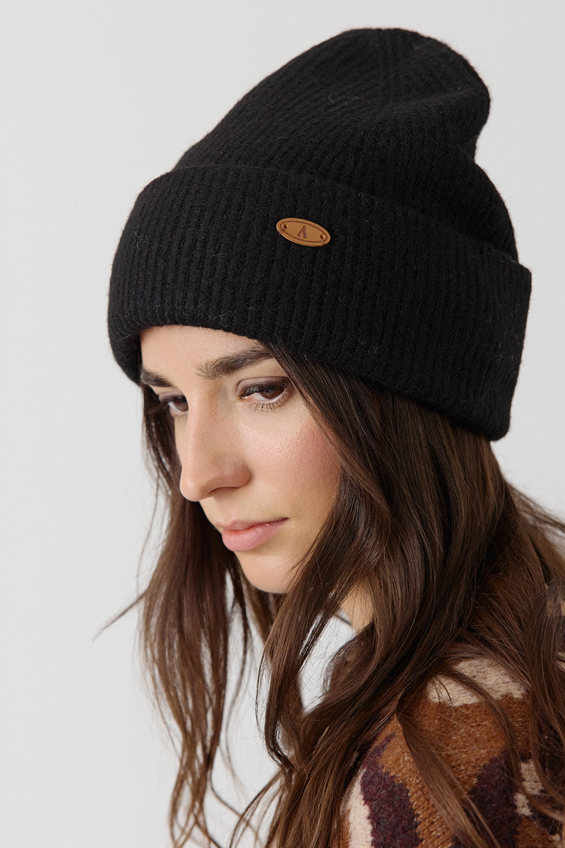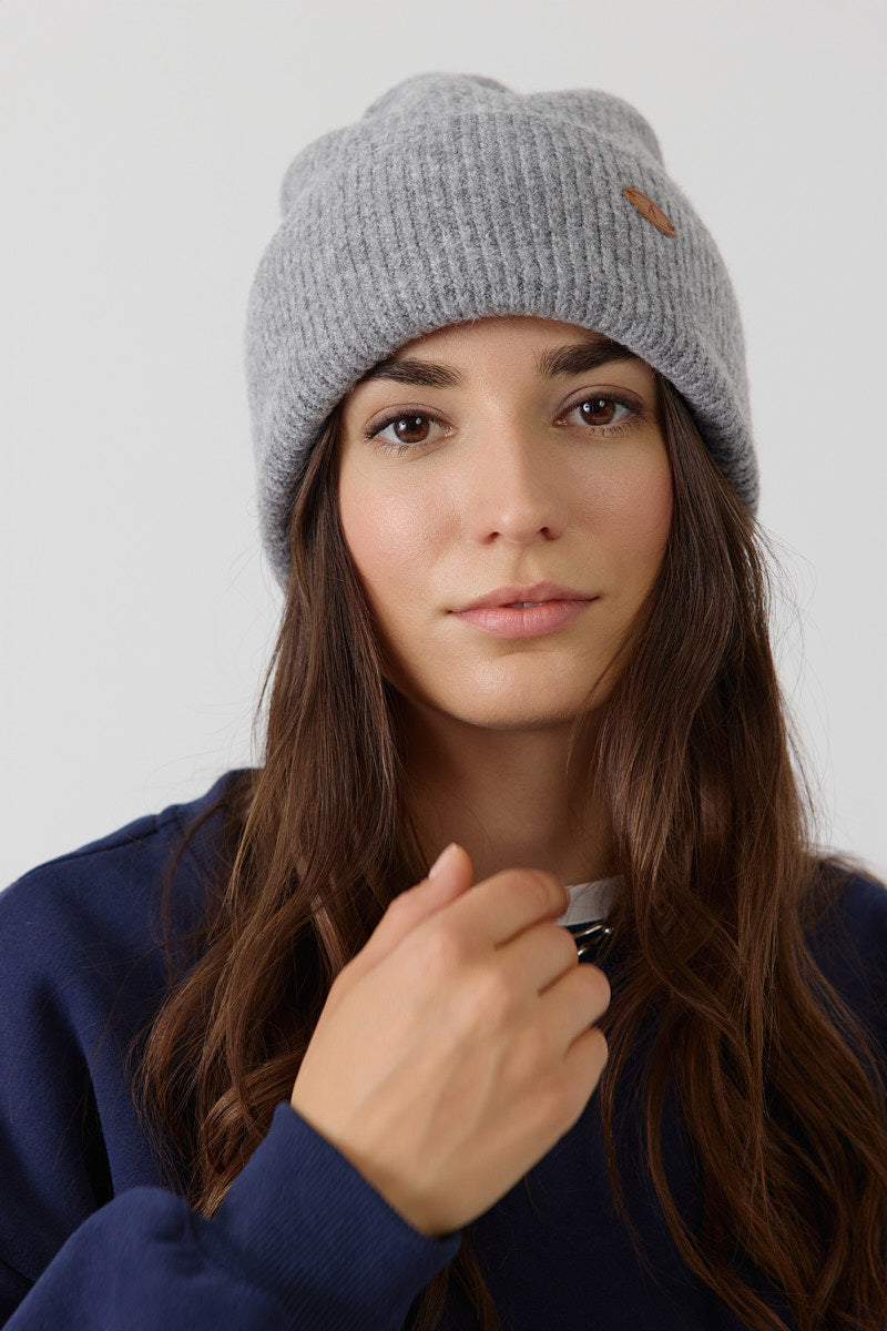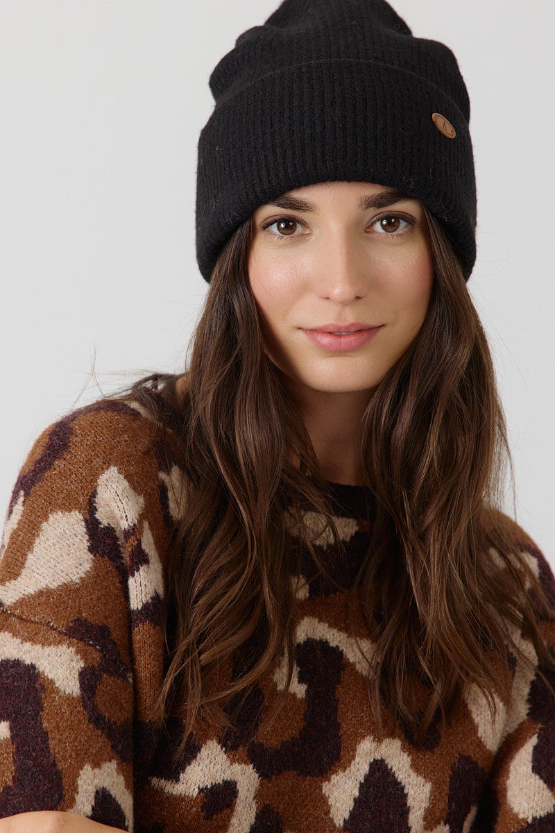 Bonnet à maille côtelée avec revers large, doux et chaud pour l’hiver.