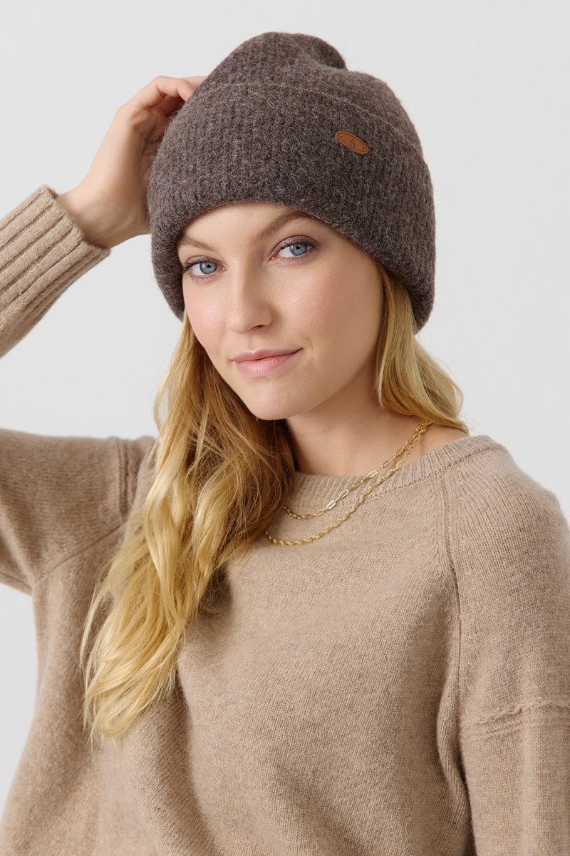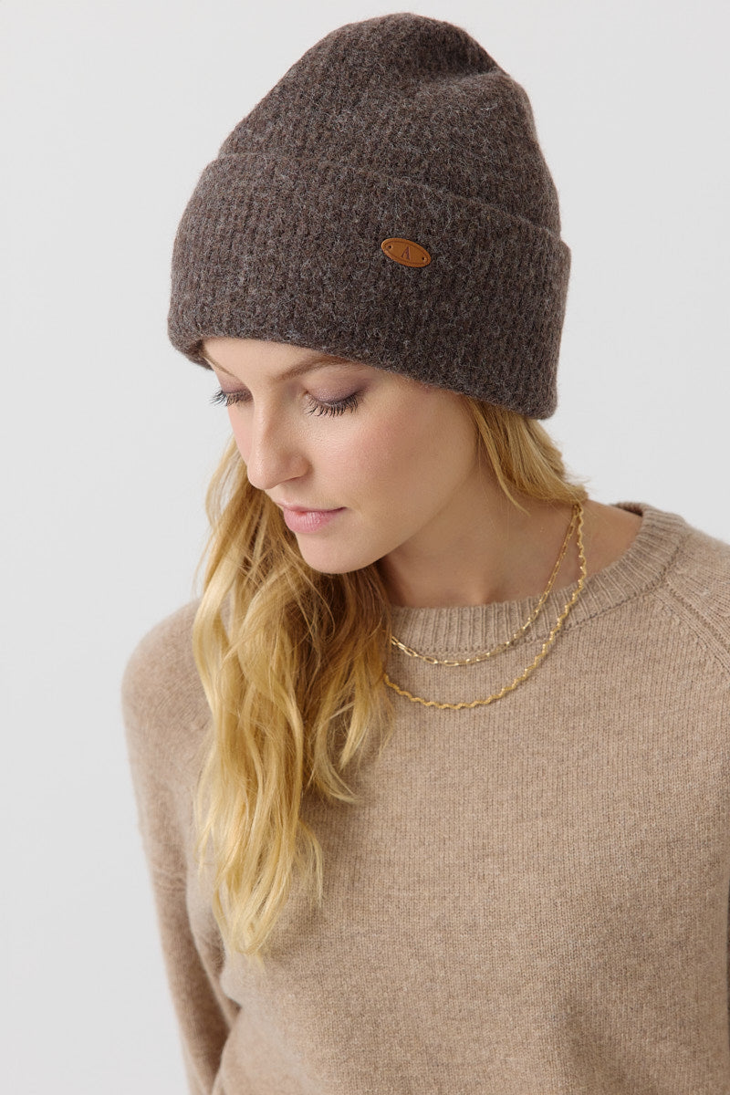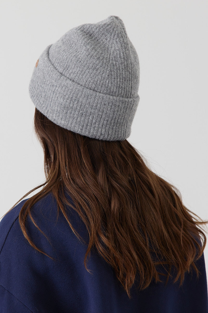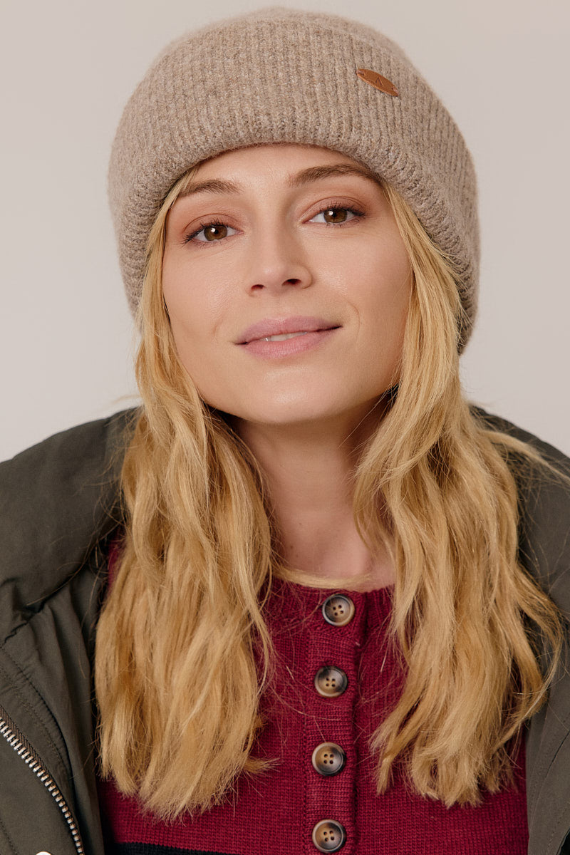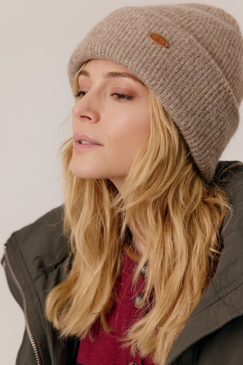Bonnet à maille côtelée avec revers large, doux et chaud pour l’hiver.