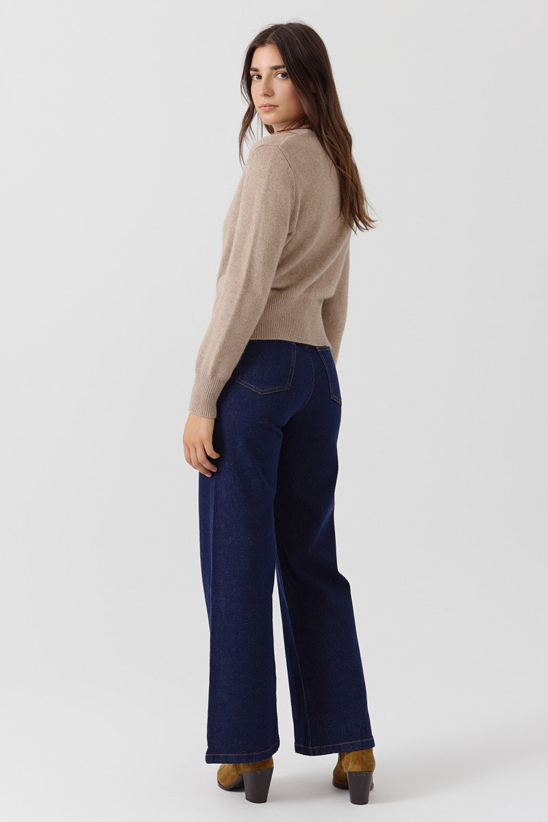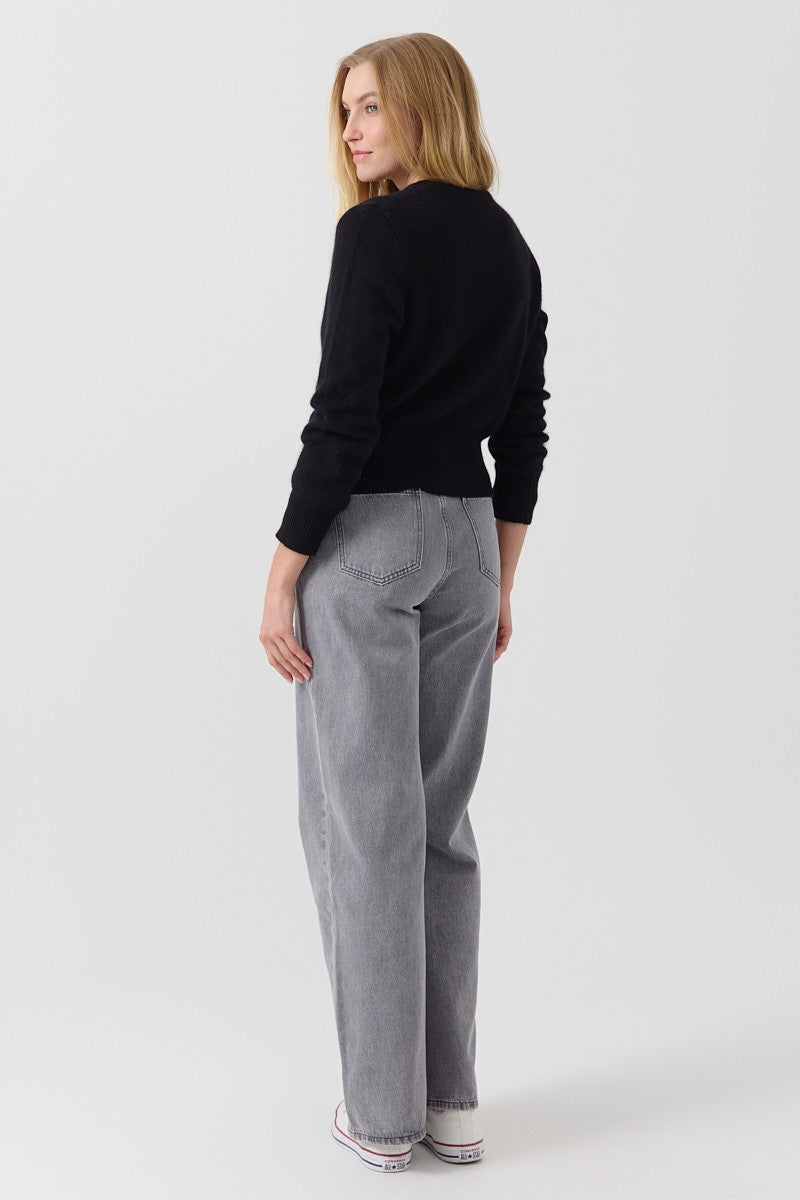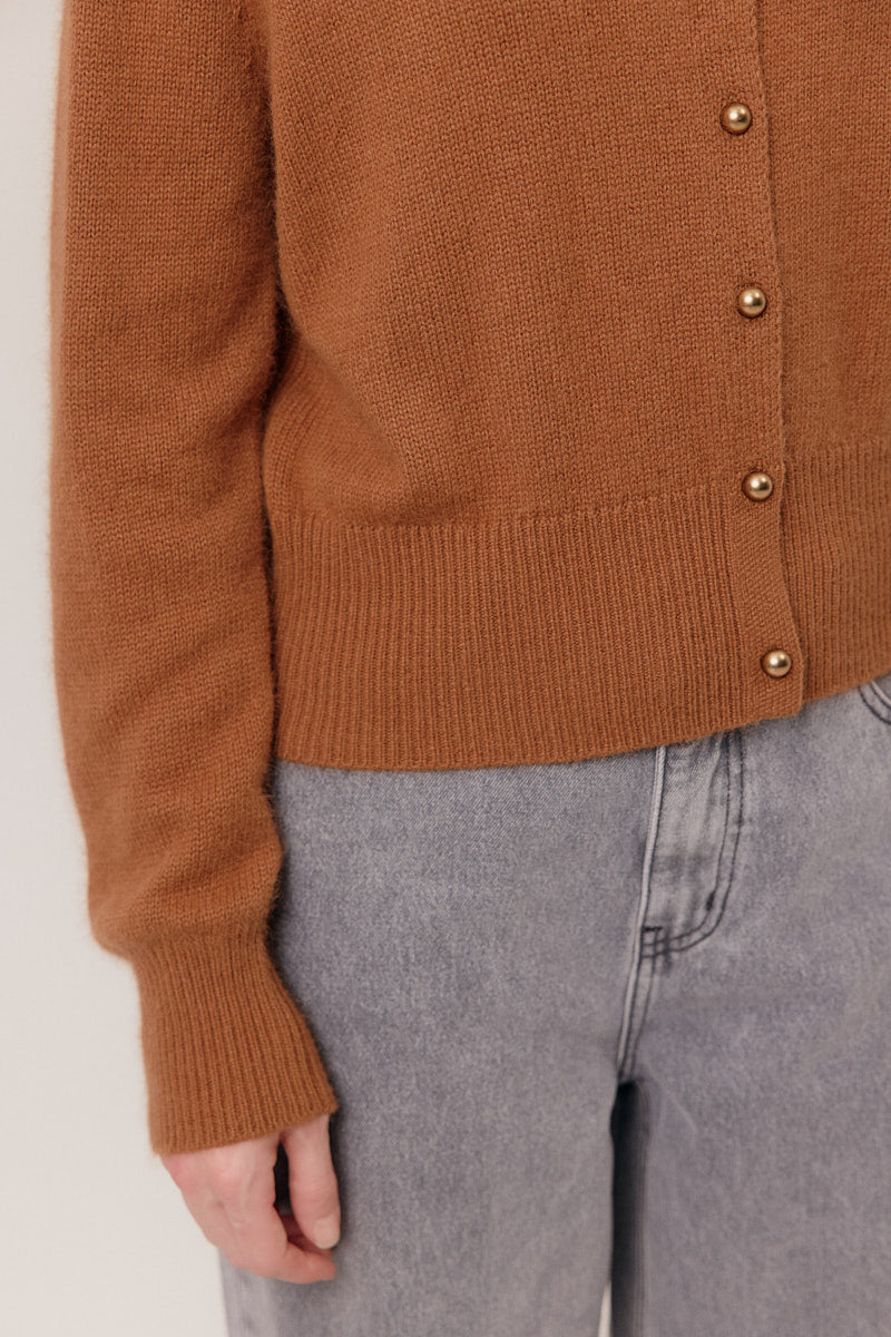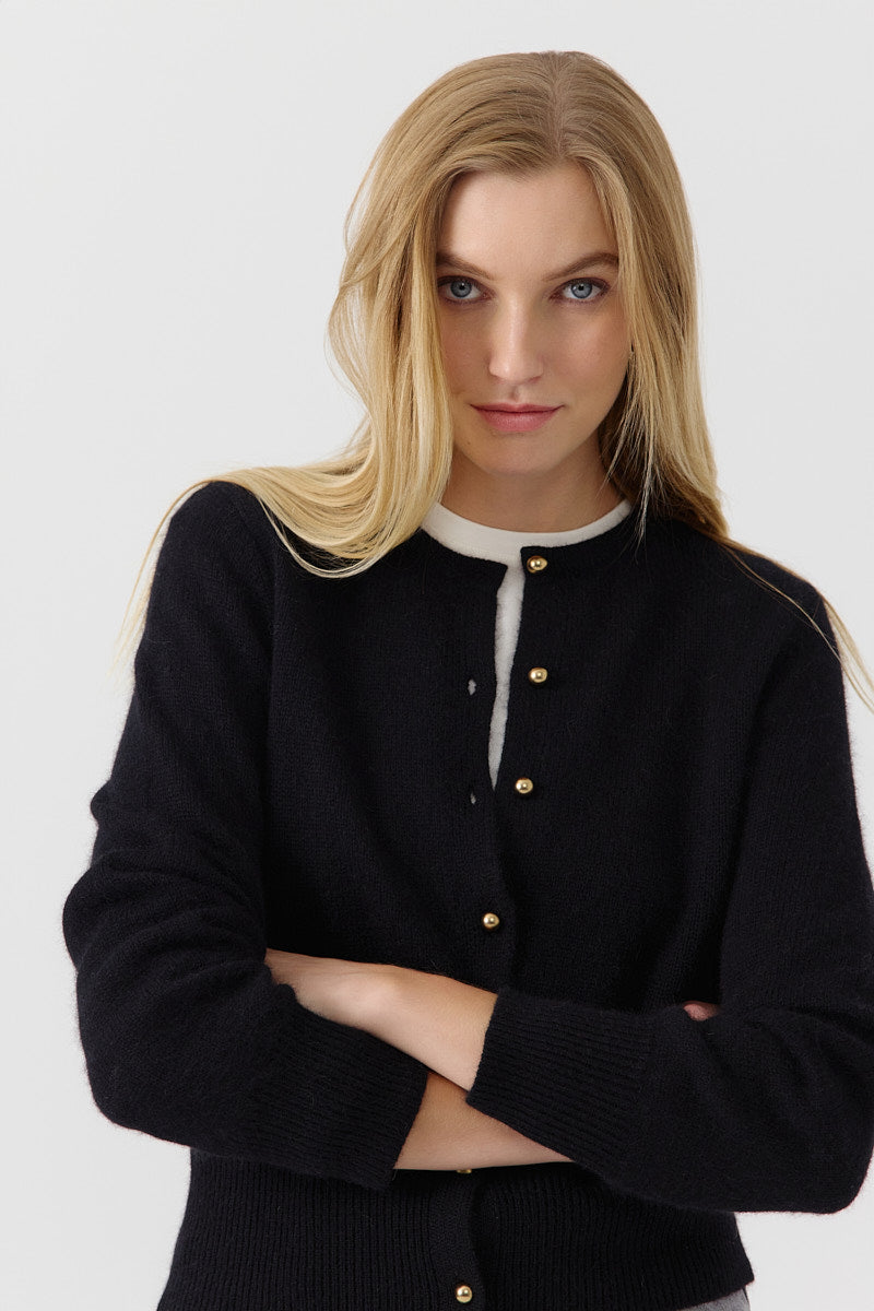 Cardigan doux au toucher duveteux, boutons dorés pour une touche féminine.
