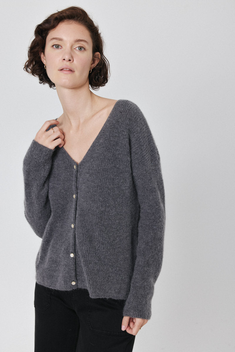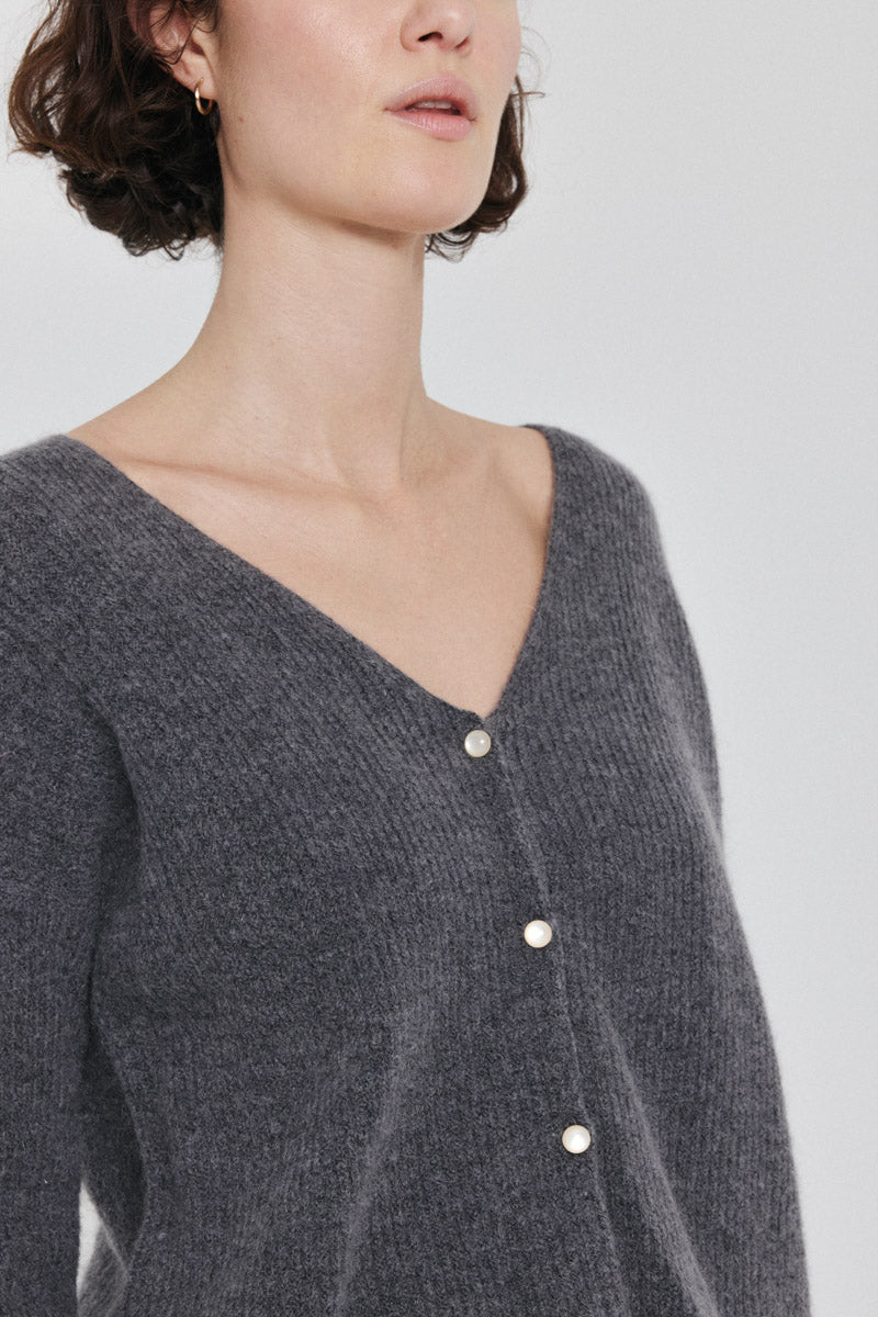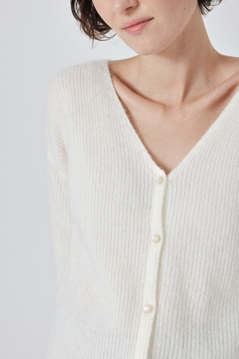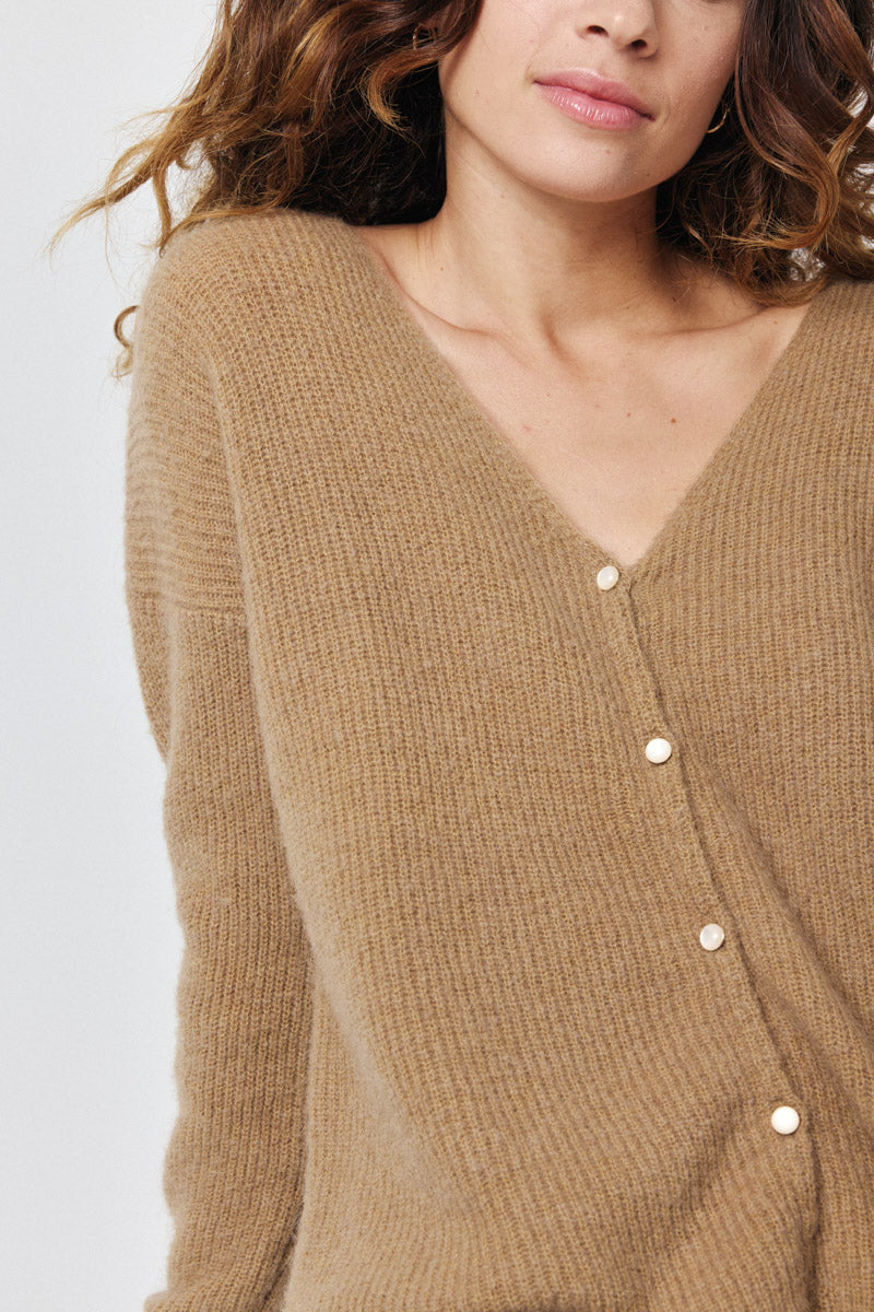 Cardigan en maille côtelée. Parfait pour des superpositions stylées.