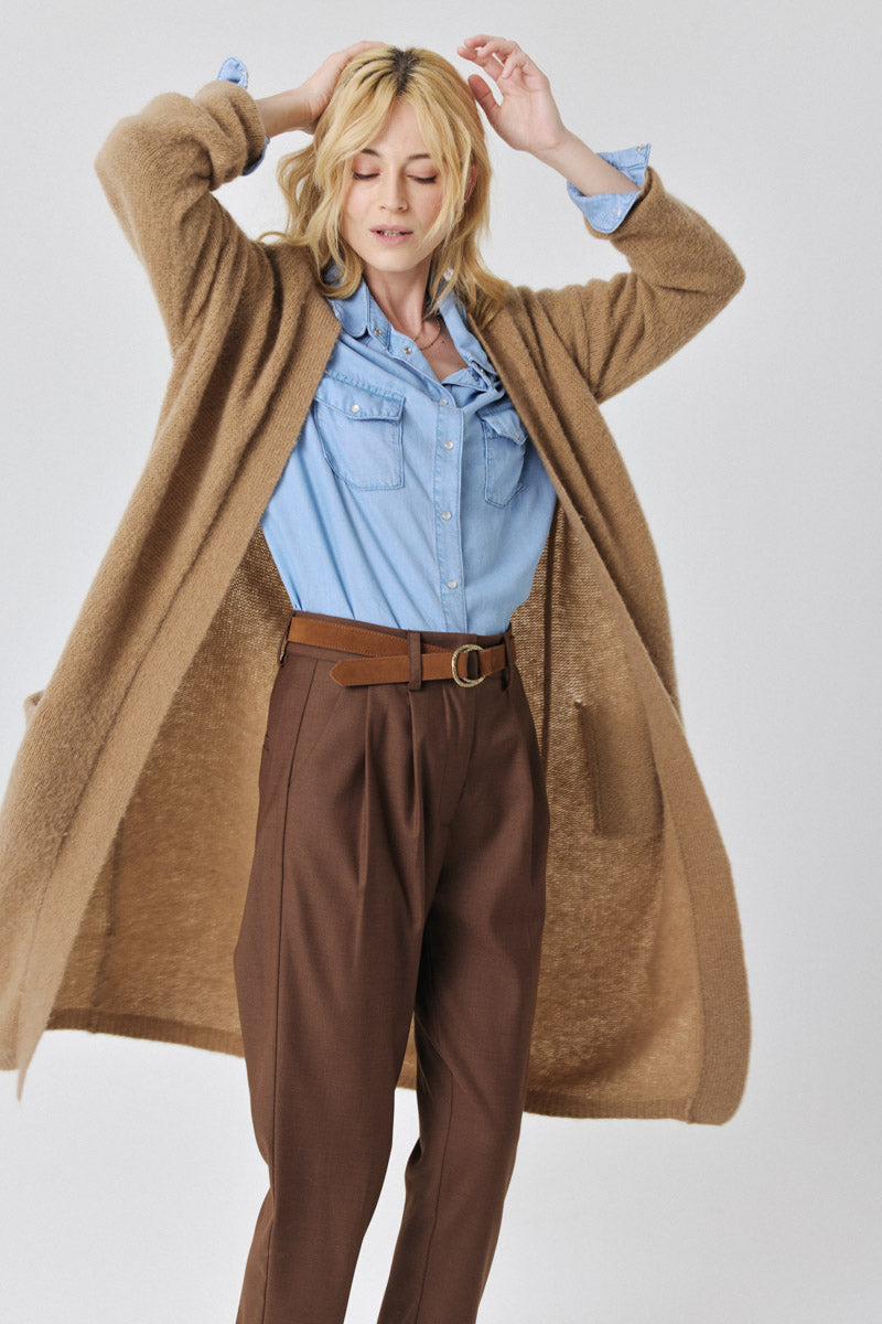 Cardigan long et confortable avec poches. Parfait pour les journées décontractées.