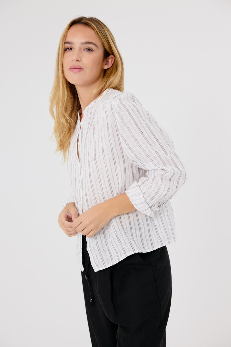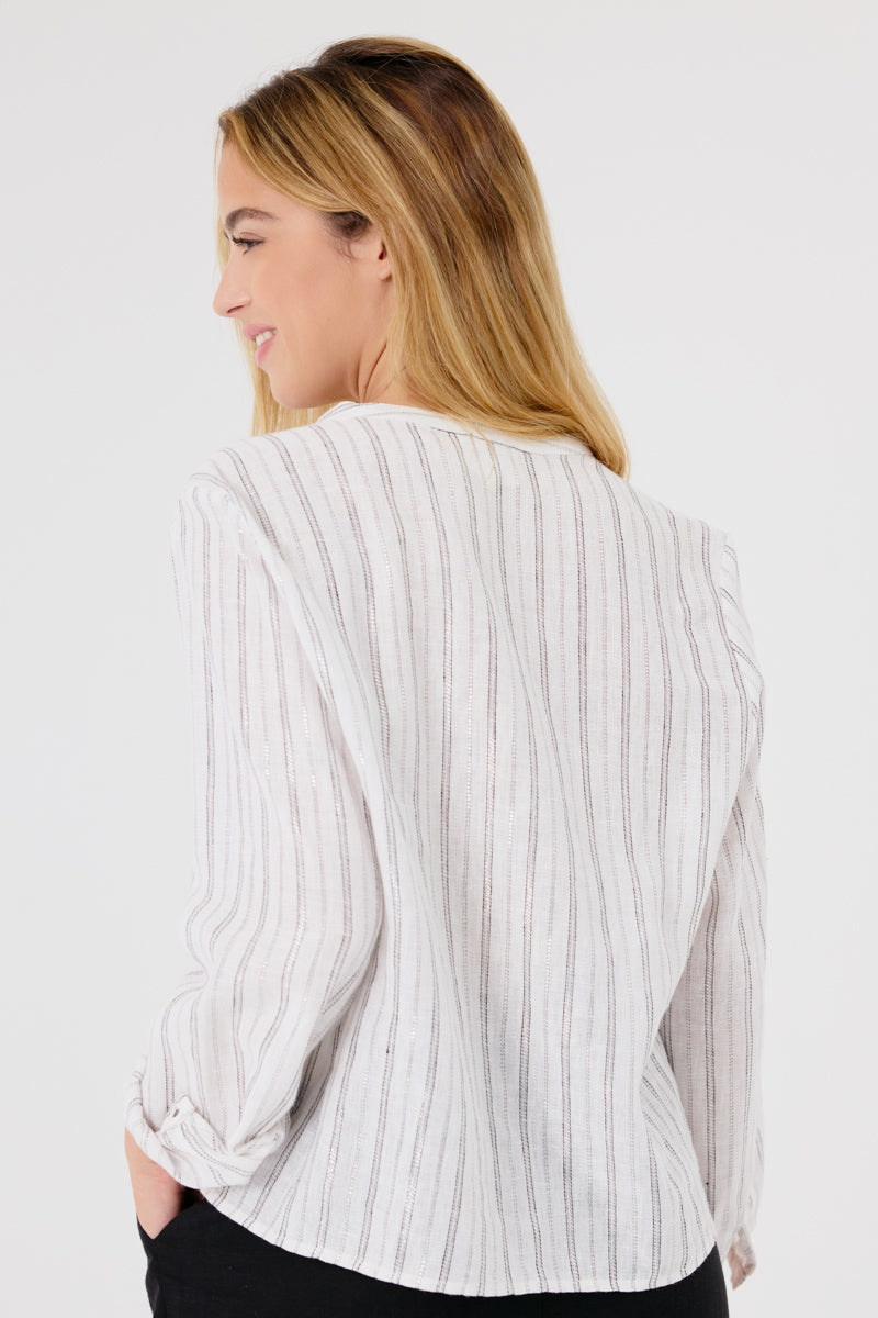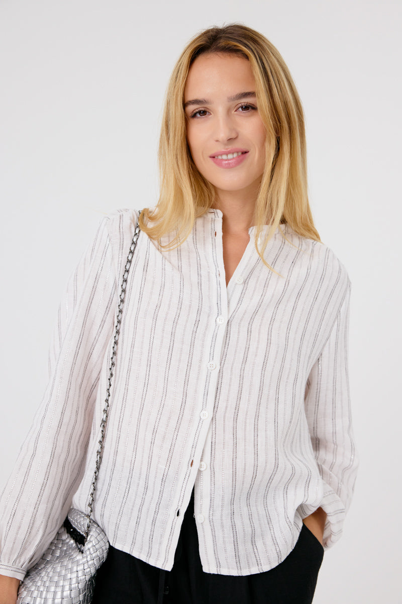 Ce haut structuré est parfait pour compléter une tenue sophistiquée. Idéal pour une réunion ou un dîner raffiné.