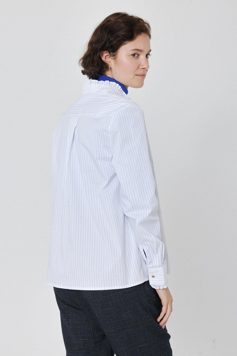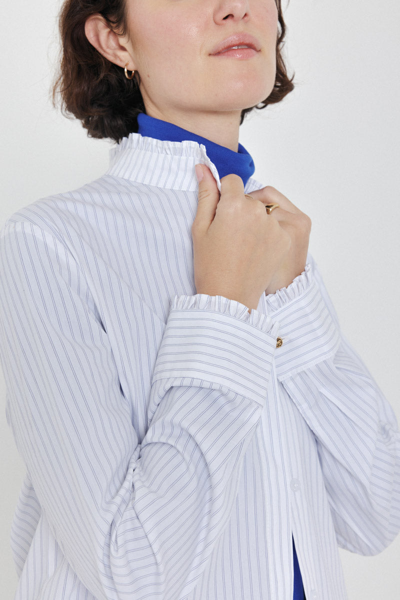 Chemise rayée avec détails à volants. Ajoute une touche féminine à votre tenue.