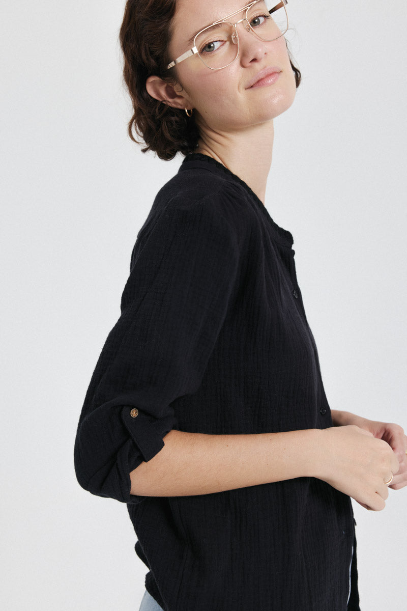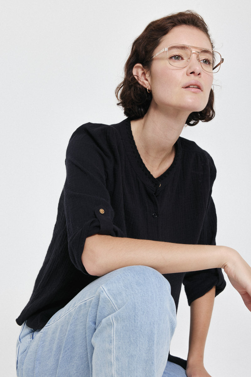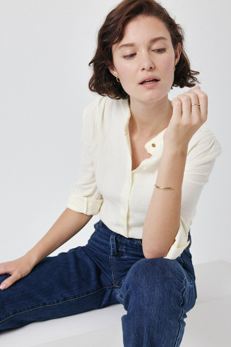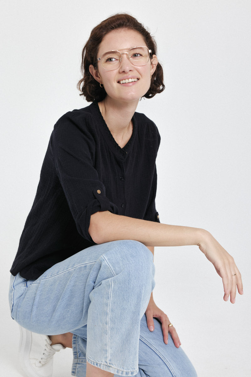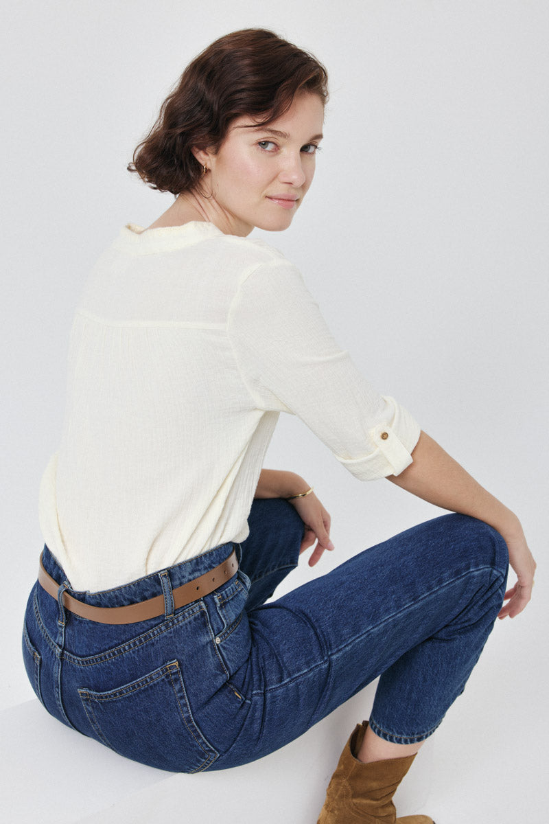 Chemise boutonnée avec manches trois-quarts. Idéale pour un look chic et décontracté.
