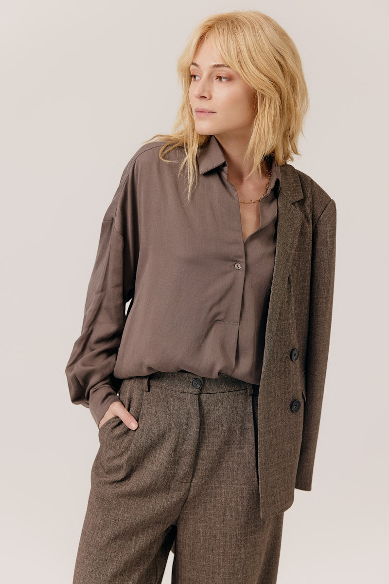 Chemise fluide en lyocell, dotée d’une coupe ample et de manches longues boutonnées. Son tombé souple et léger apporte un confort optimal, tandis que son col classique et sa patte de boutonnage discrète ajoutent une touche élégante et polyvalente à votre tenue.