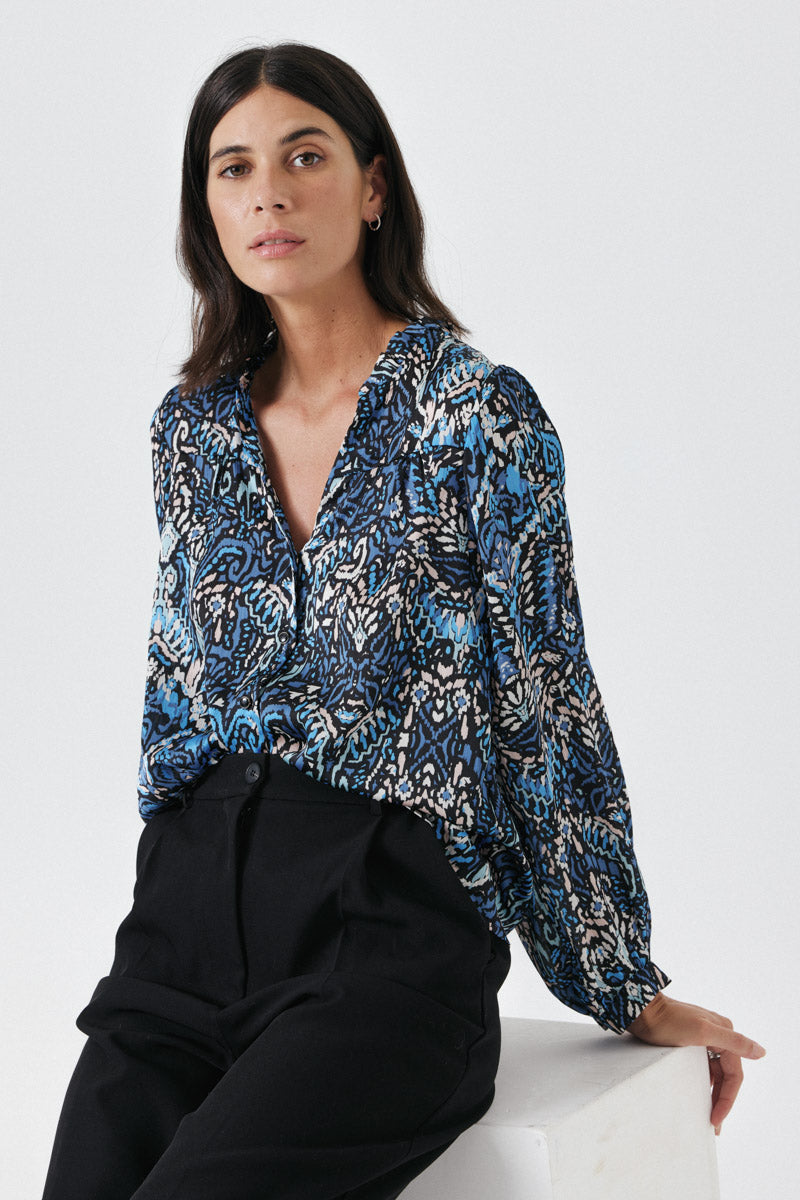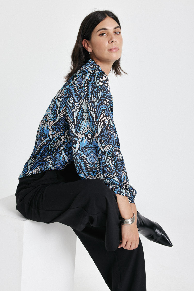 Blouse à motifs ethniques. Ajoutez une touche d'originalité et de couleur à vos tenues. Parfaite pour un look unique et tendance.