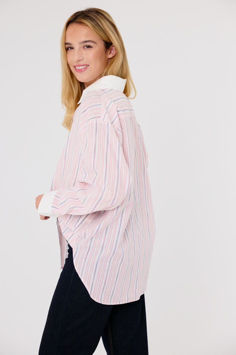 Chemise rayée avec un col contrasté et une coupe structurée. Un modèle parfait pour un look frais et moderne.
