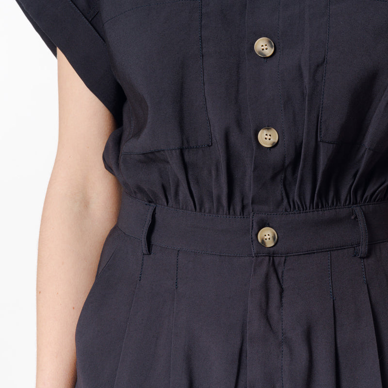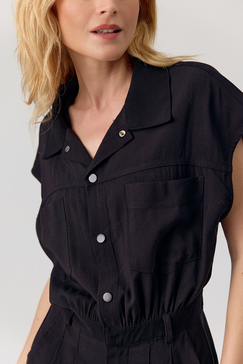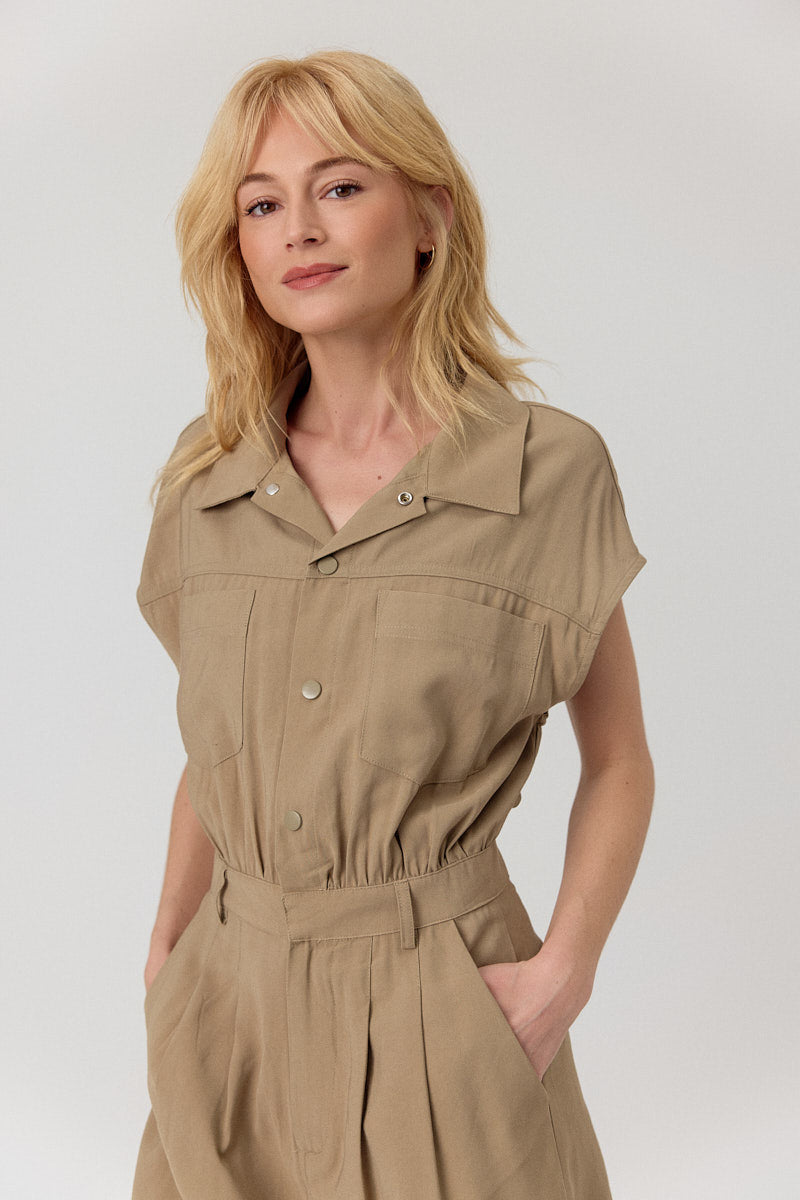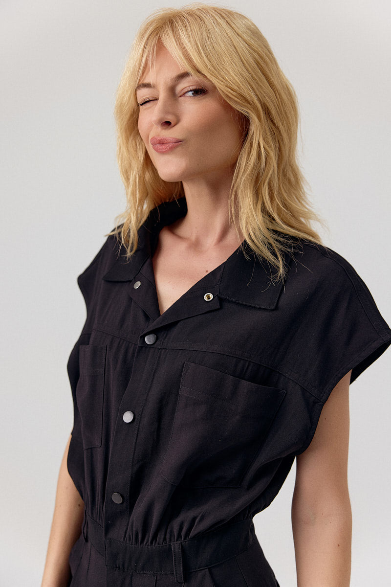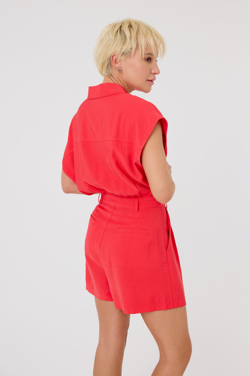 Combishort à la coupe flatteuse, conçu pour une tenue féminine qui combine style et praticité.