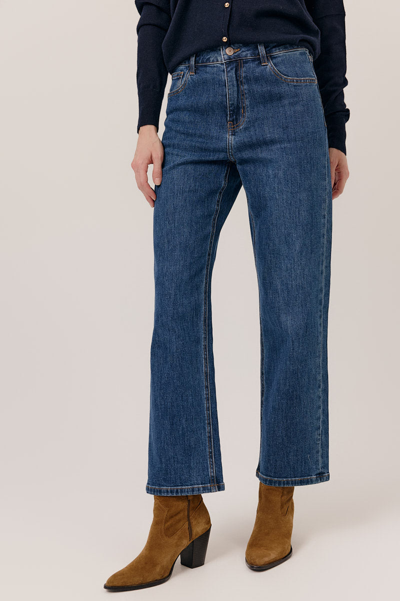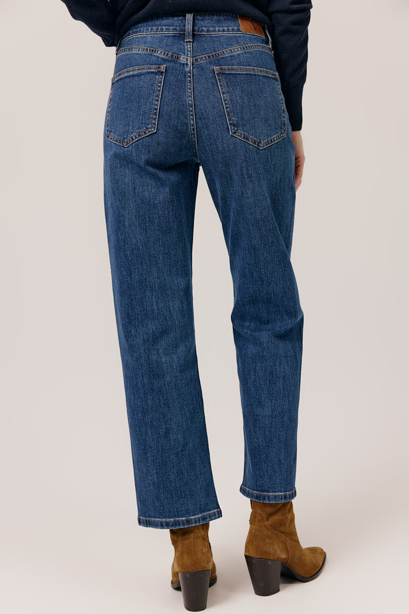 Jean droit classique à la coupe flatteuse et confortable.