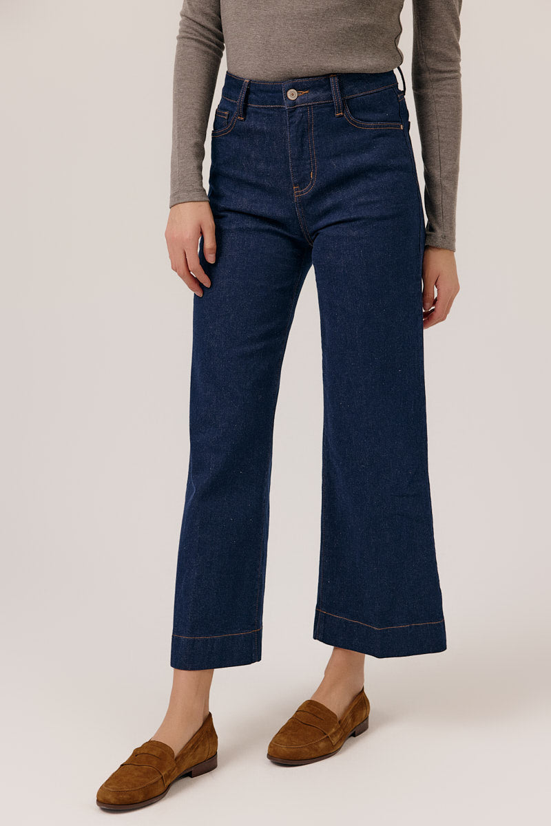 Jean cropped à la coupe droite et moderne, facile à associer.