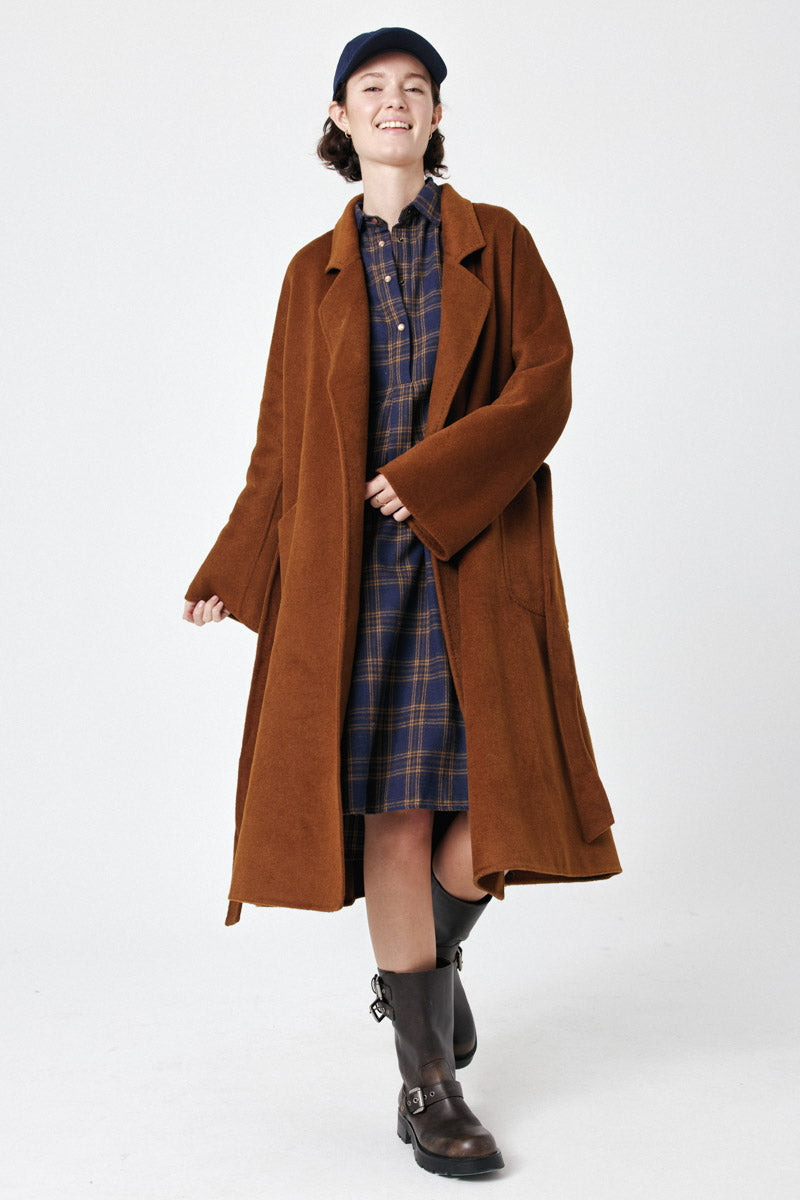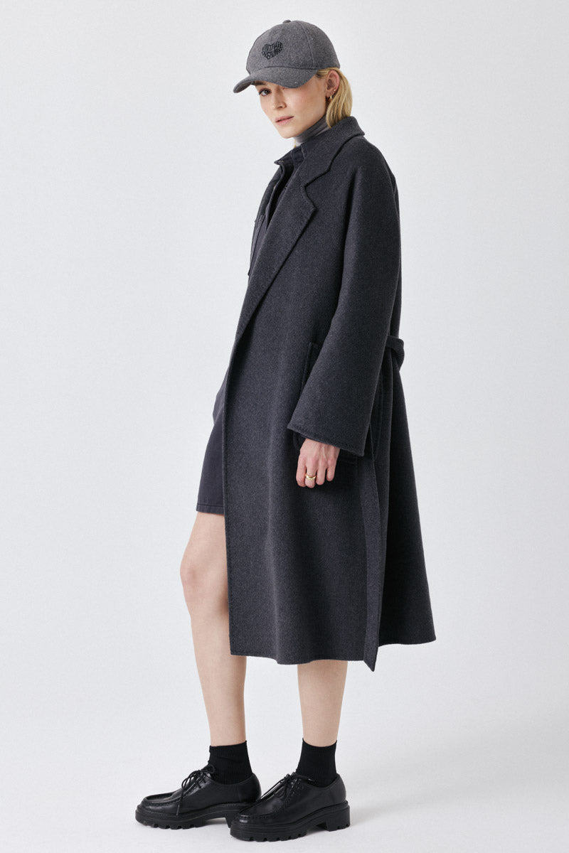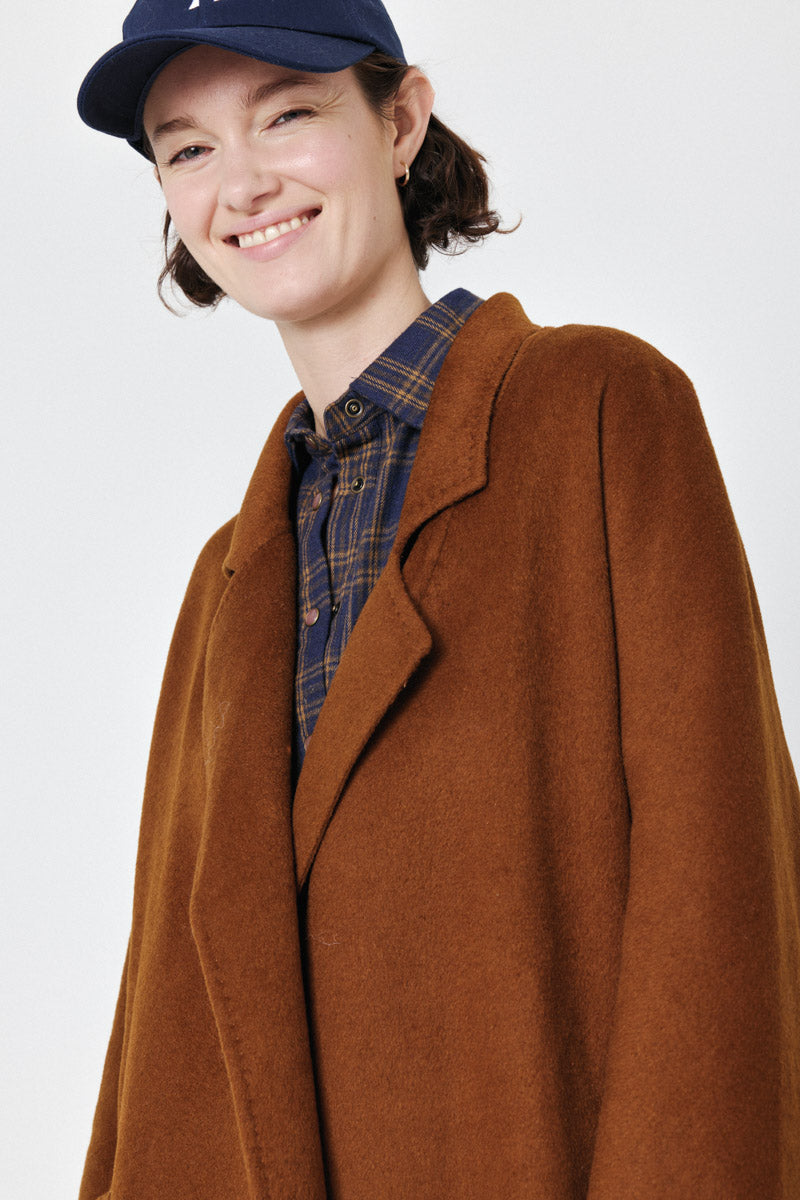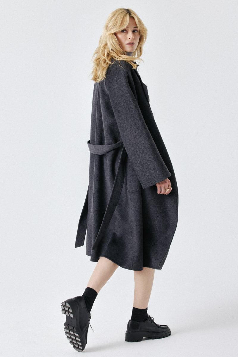 Manteau en laine avec ceinture. Confortable et chaud, idéal pour les saisons froides.
