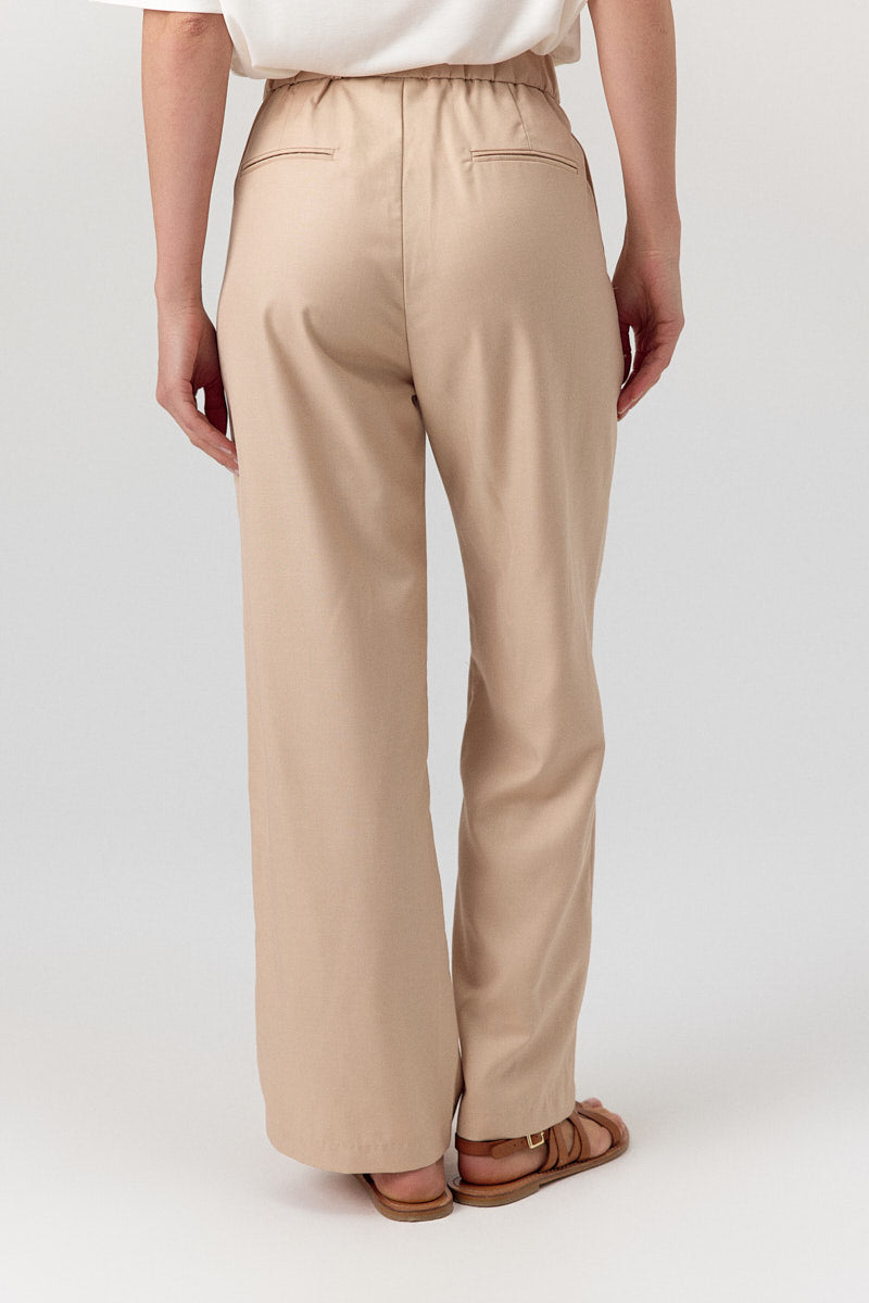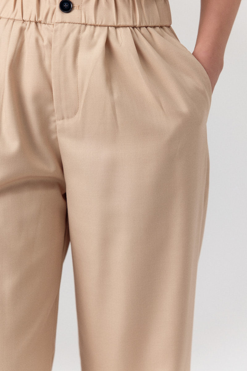 Ce pantalon combine modernité et confort grâce à sa taille élastiquée et sa coupe fluide. Idéal pour un style décontracté ou une tenue élégante, il garantit un tombé impeccable avec une finition soignée.