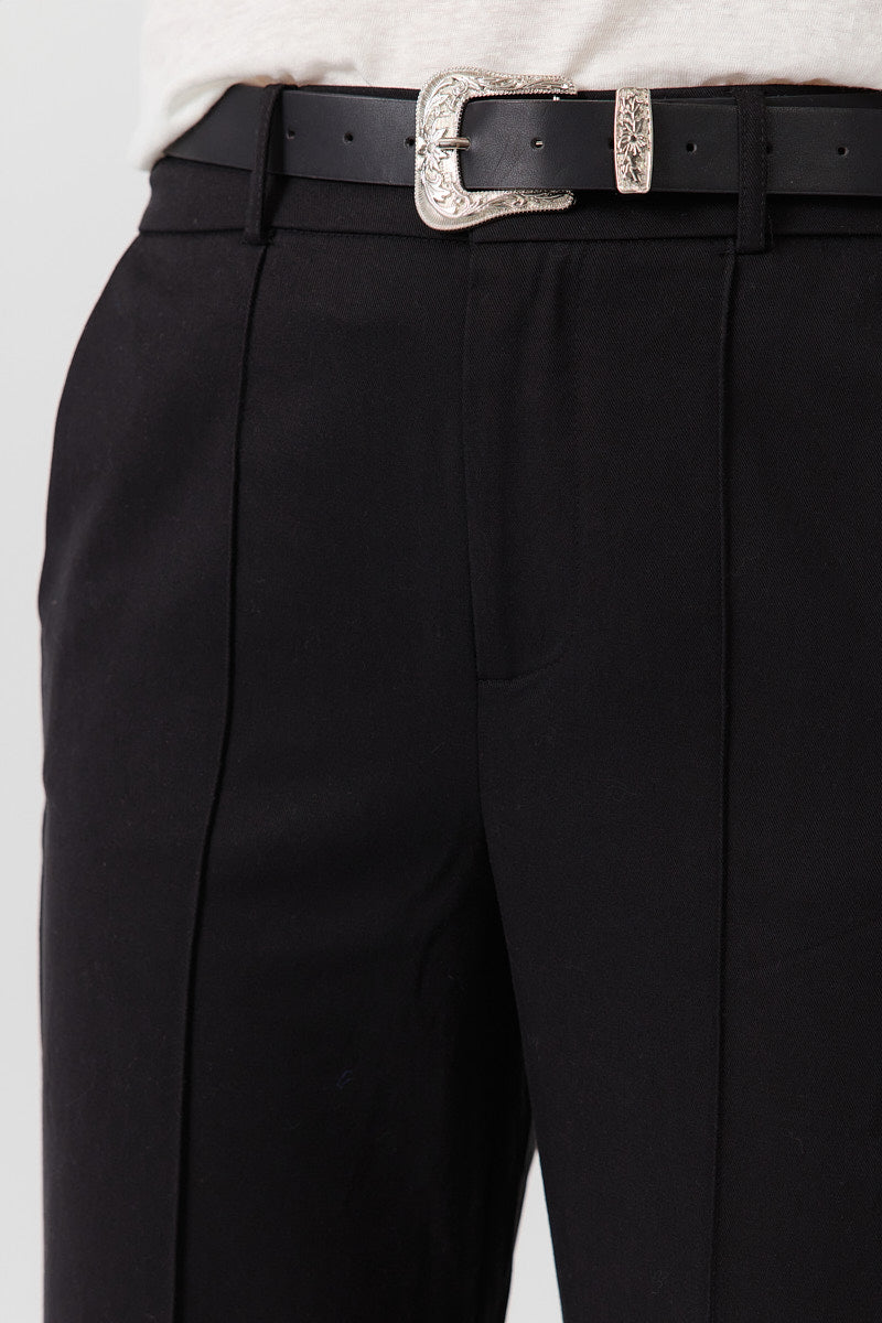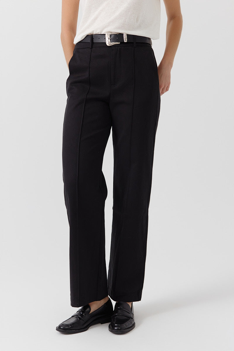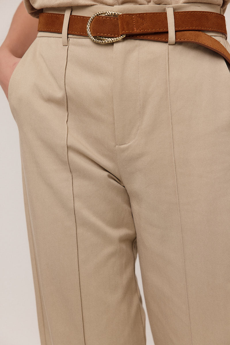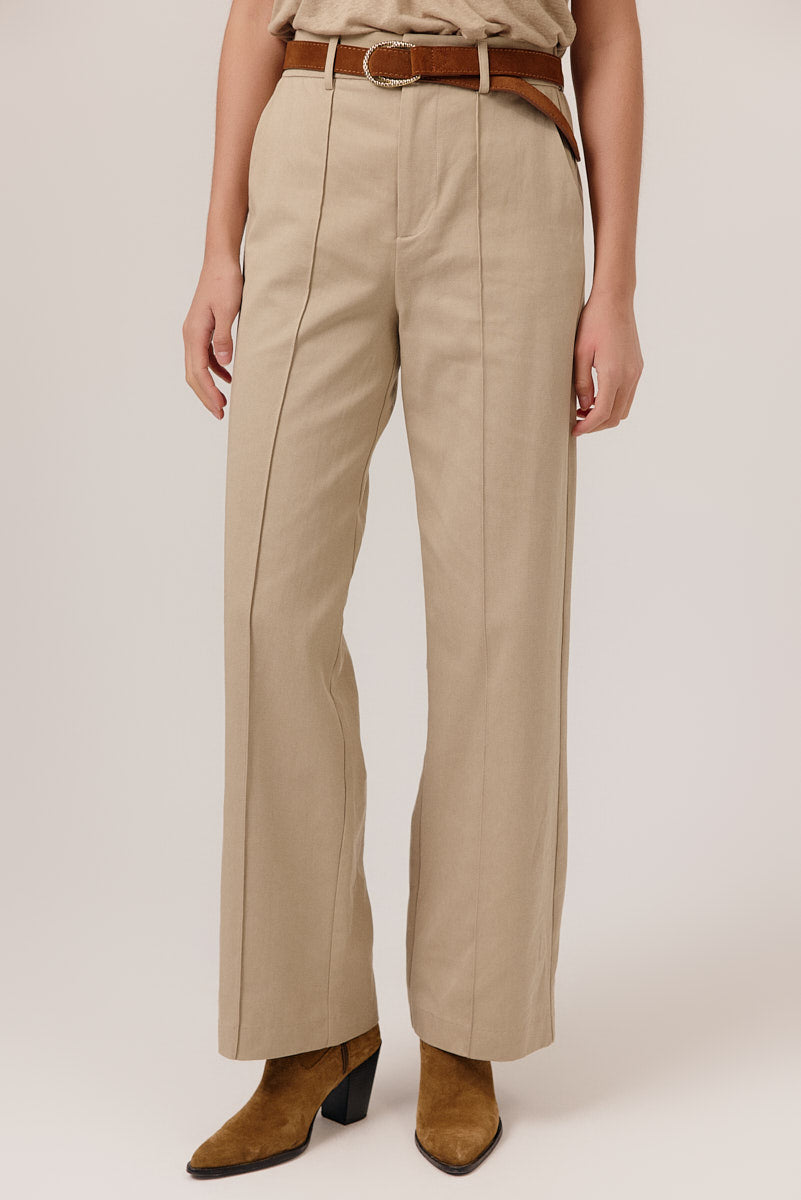 Pantalon à jambe droite, confectionné dans une toile souple et agréable à porter. Sa coupe légèrement ajustée met en valeur la silhouette tout en assurant un confort optimal.