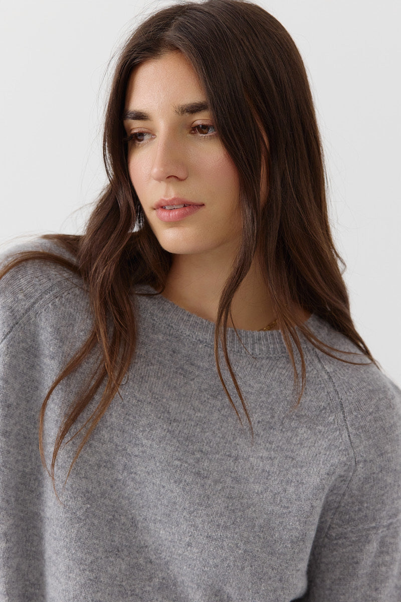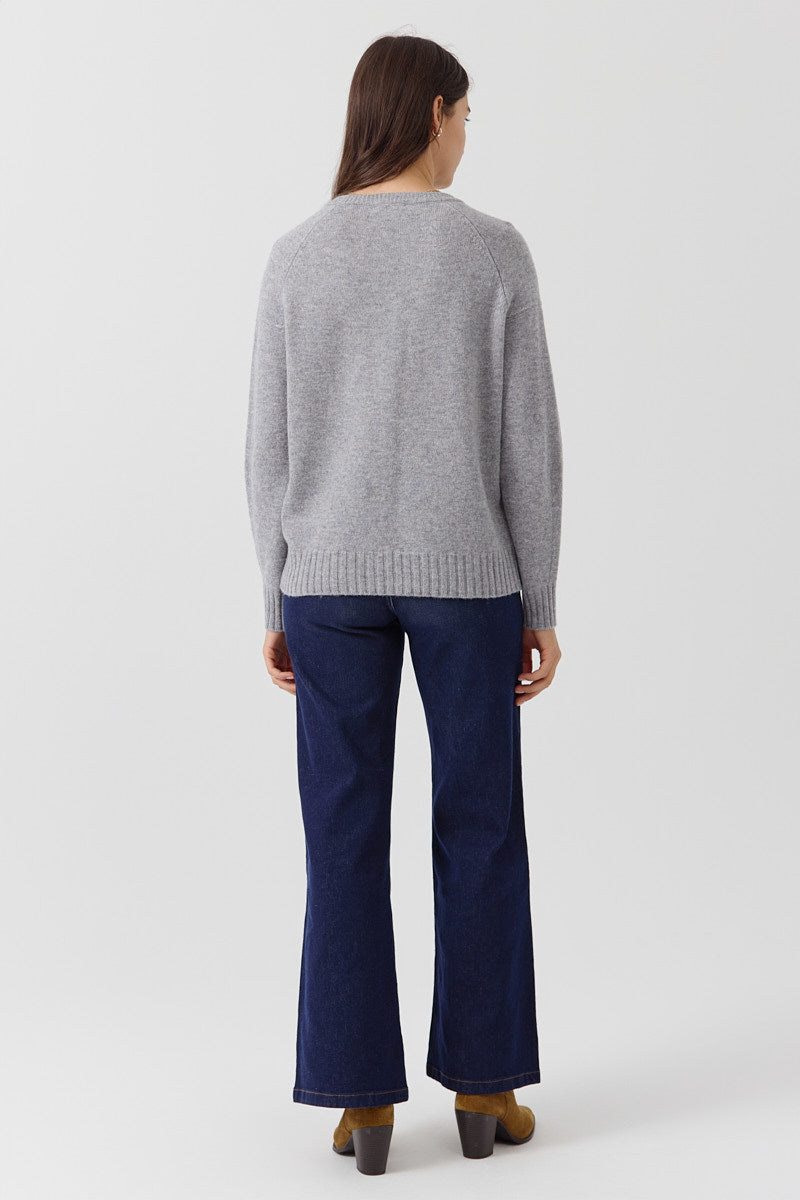 Pull à col rond et manches longues. Coupe droite légèrement ample. Finitions en bord-côte au col, aux poignets et à la base.