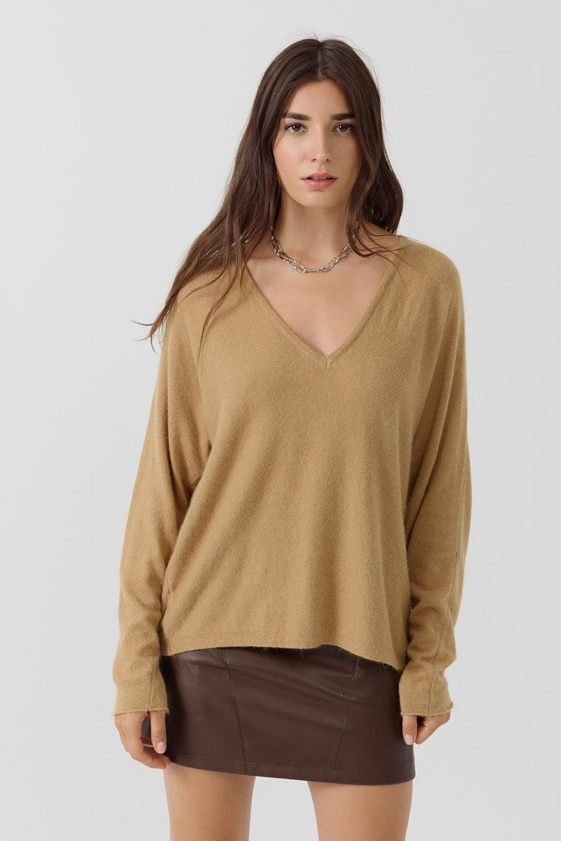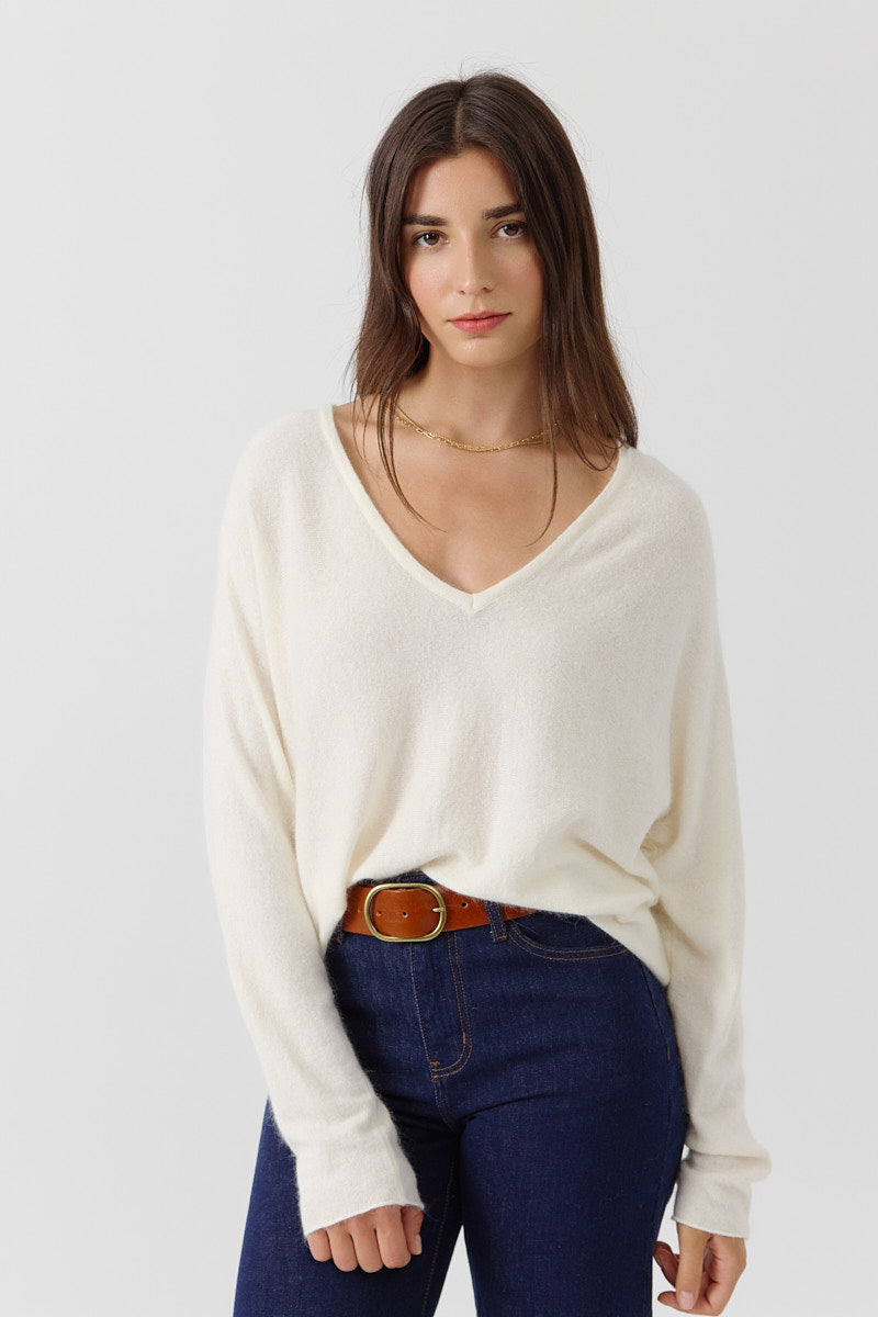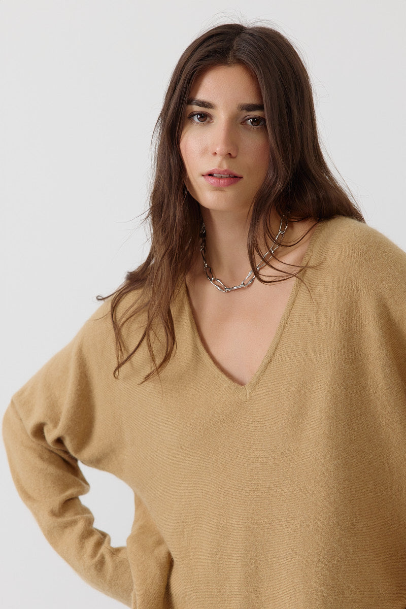 Pull en maille douce bleu cobalt, coupe oversize à col V. À porter loose pour un style cool et réconfortant.