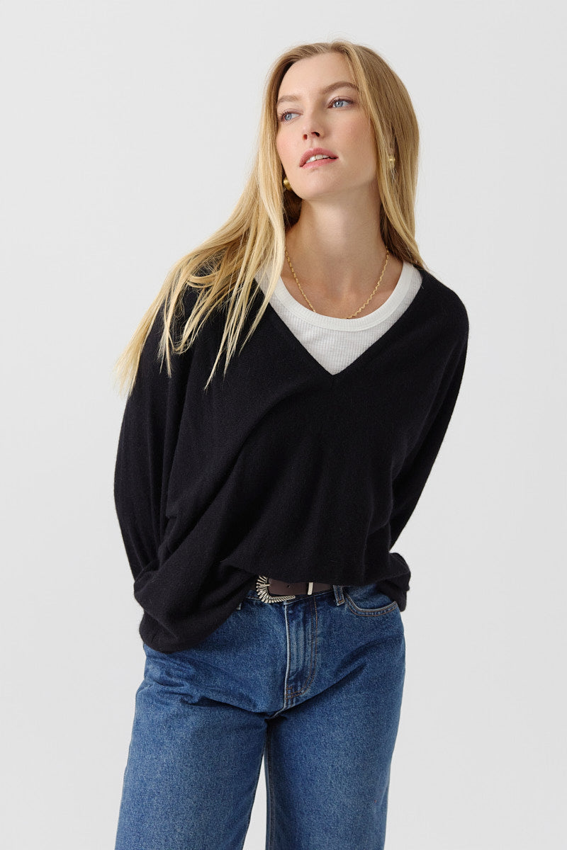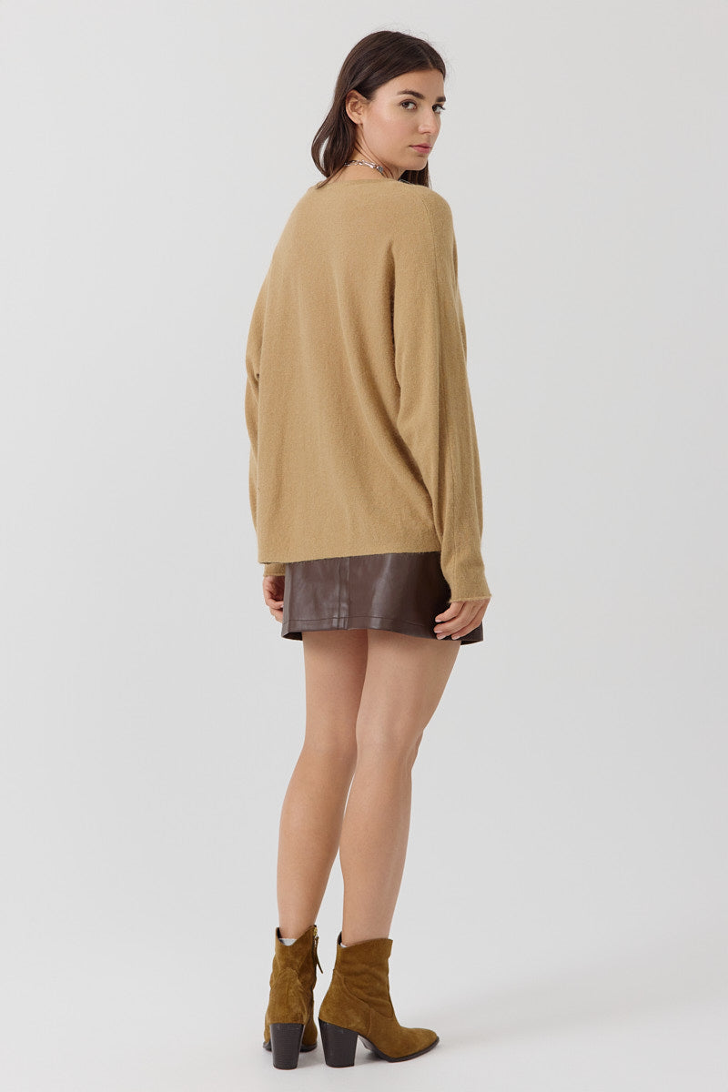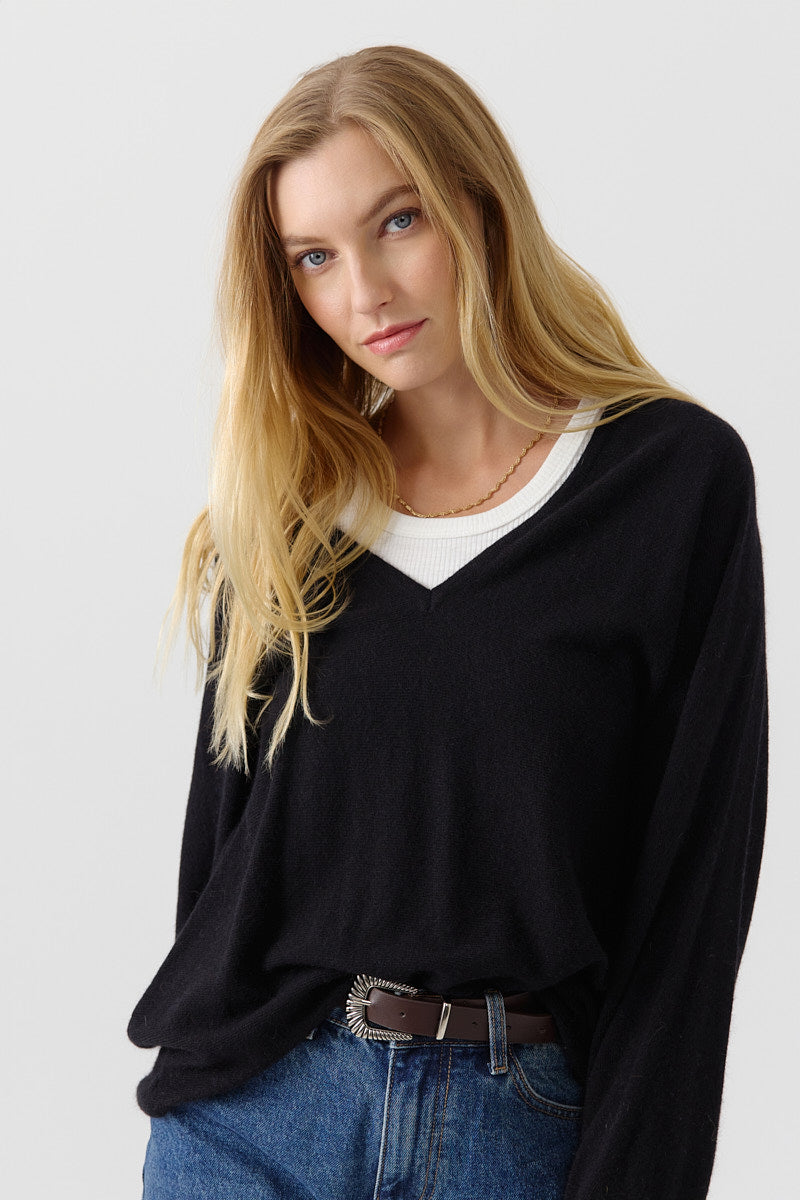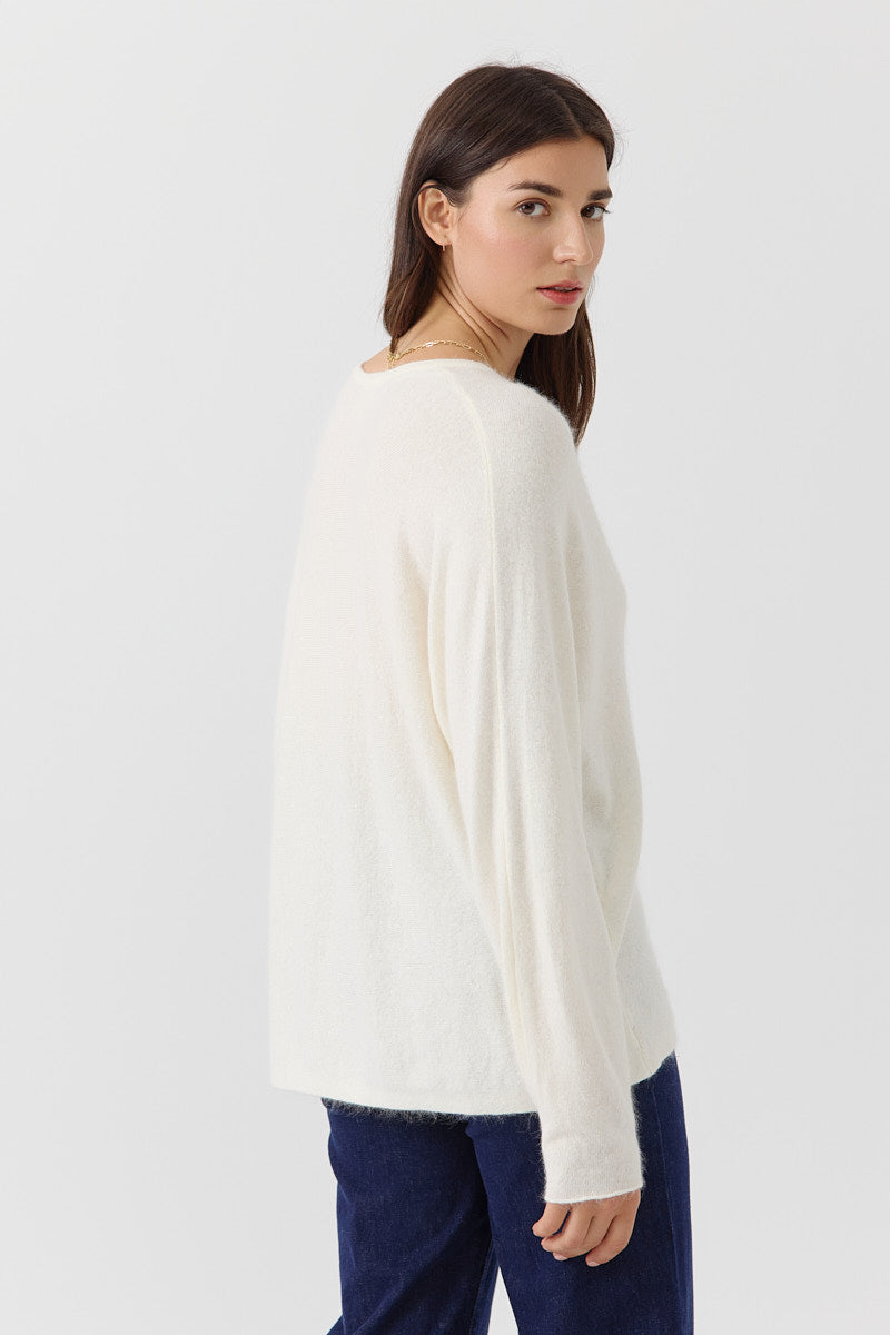 Pull en maille douce bleu cobalt, coupe oversize à col V. À porter loose pour un style cool et réconfortant.