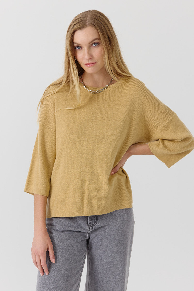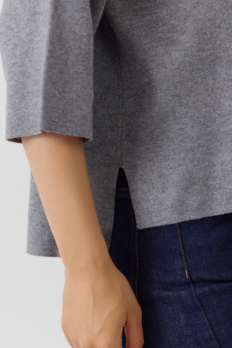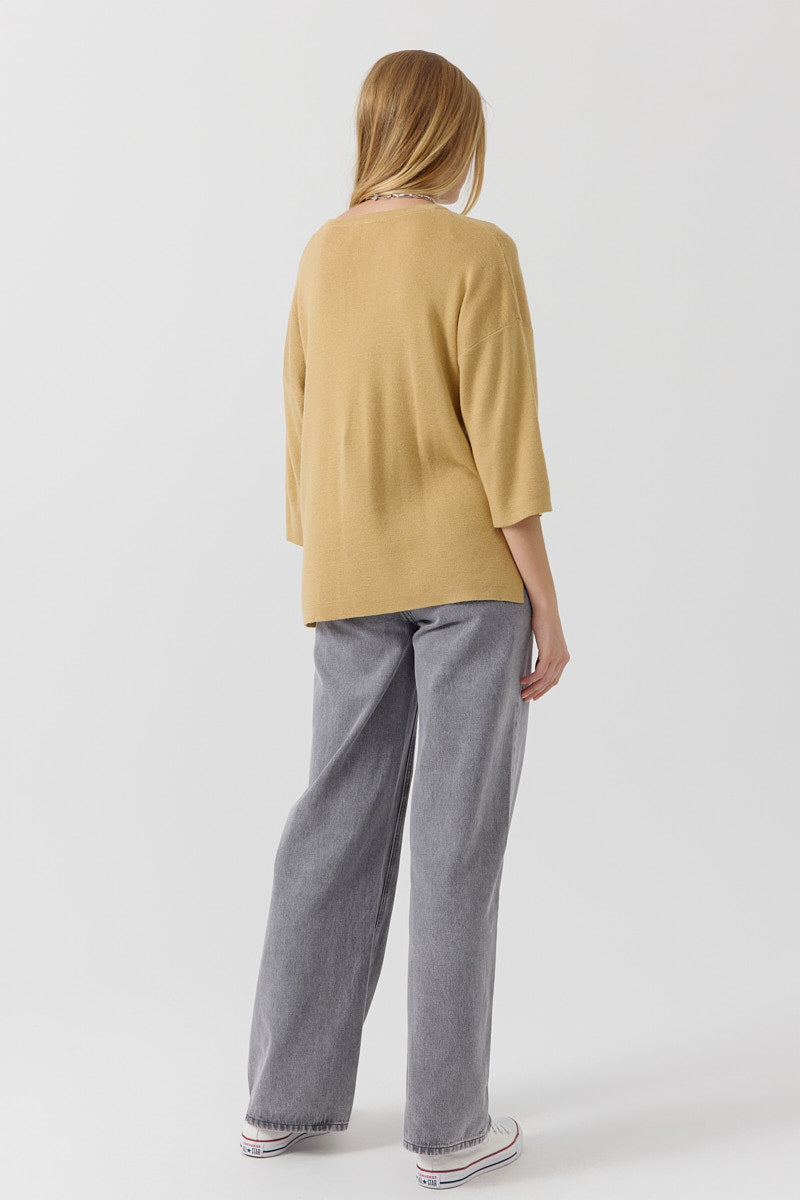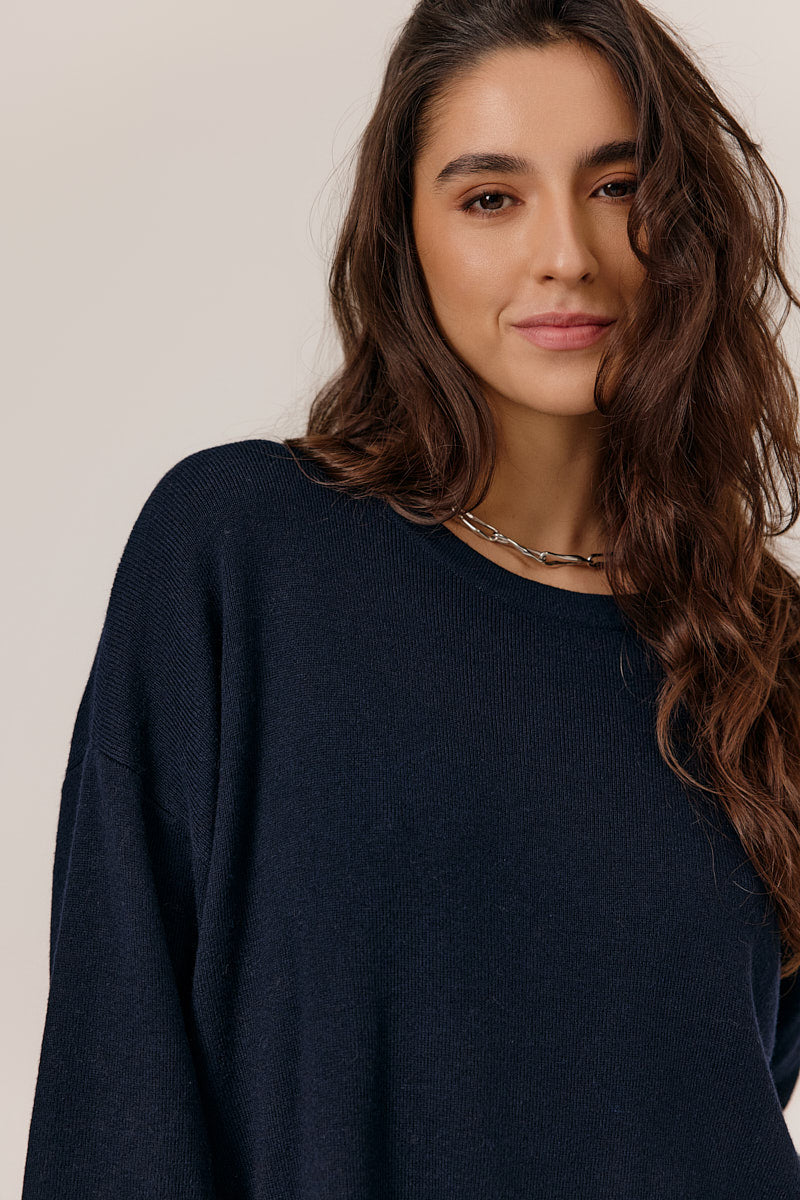 Pull col rond à manches trois-quarts. Coupe ample avec base droite. Tissu doux au toucher.