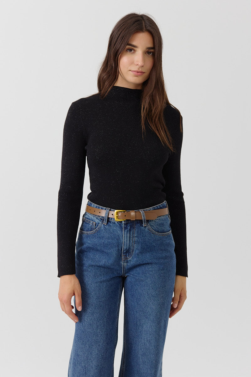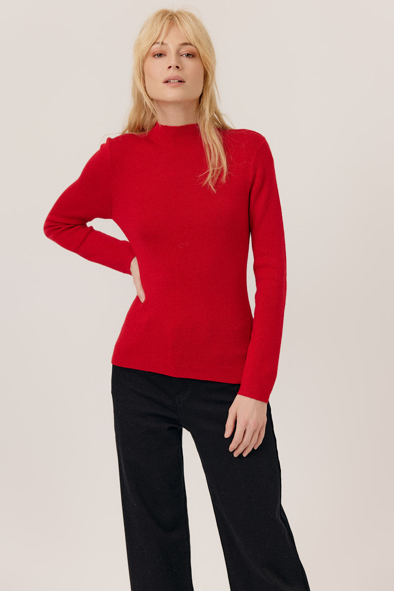 Pull fin col montant, coupe droite et près du corps. Intemporel et facile à porter.