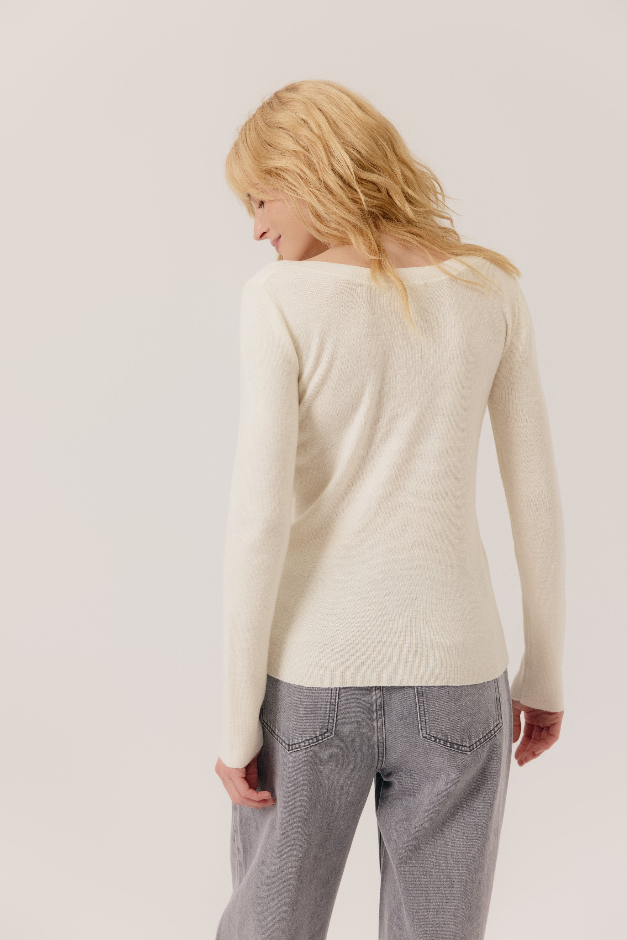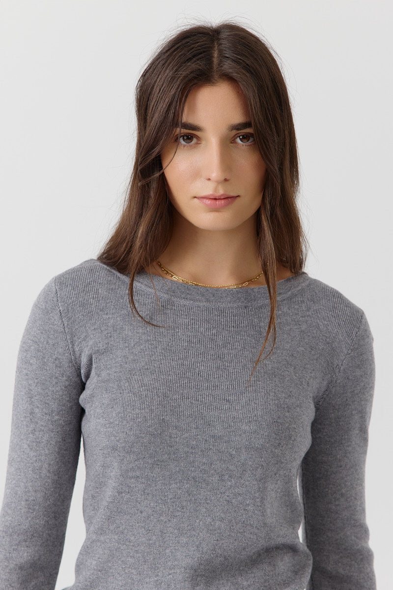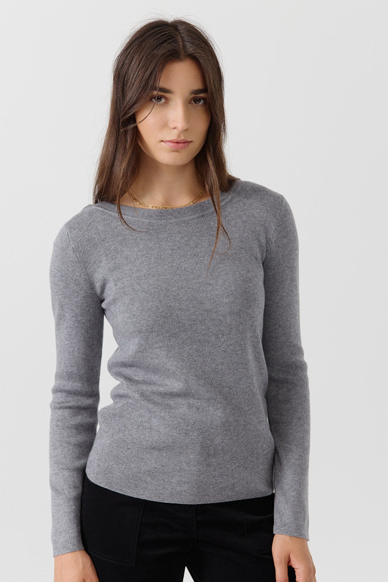 Pull col rond à manches longues. Coupe ajustée. Finitions en bord-côte au col, poignets et base.