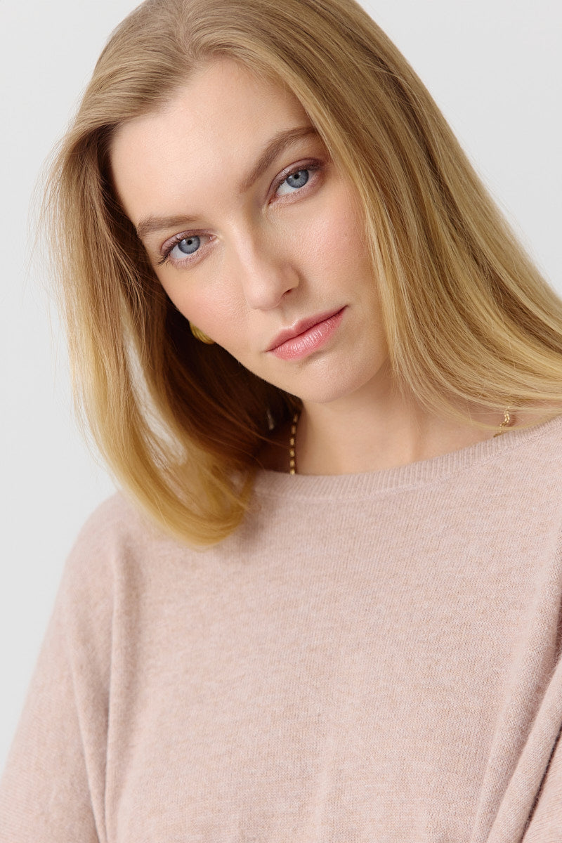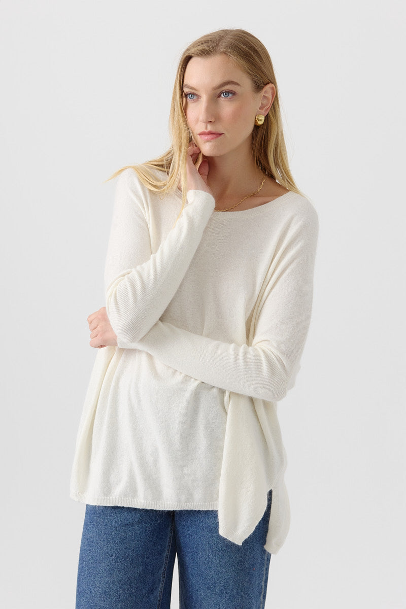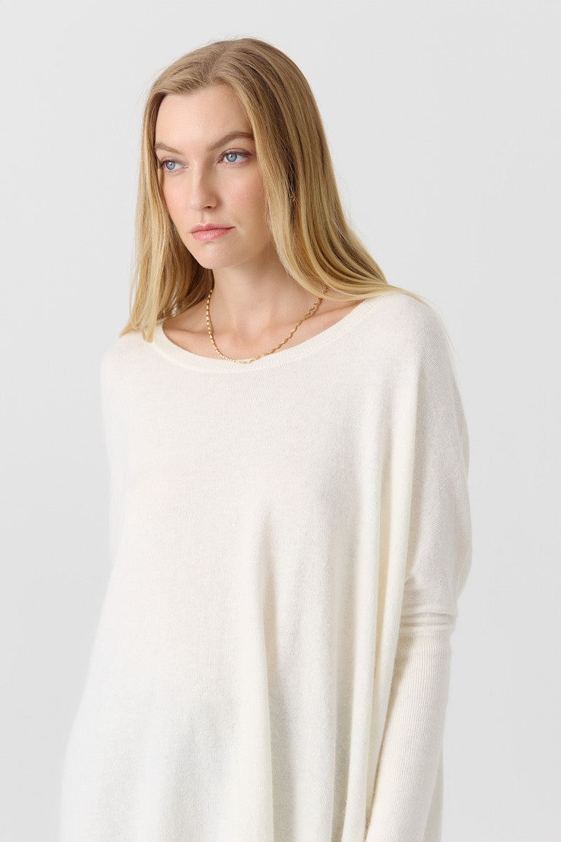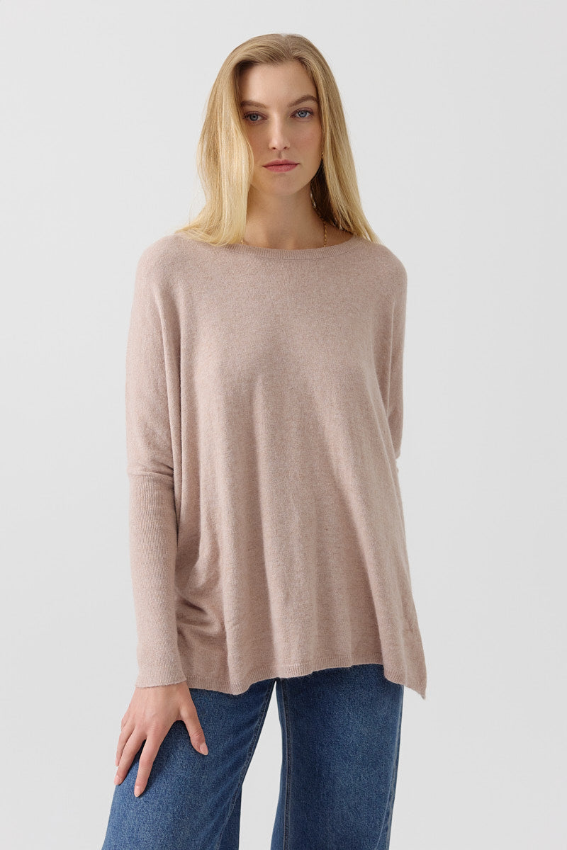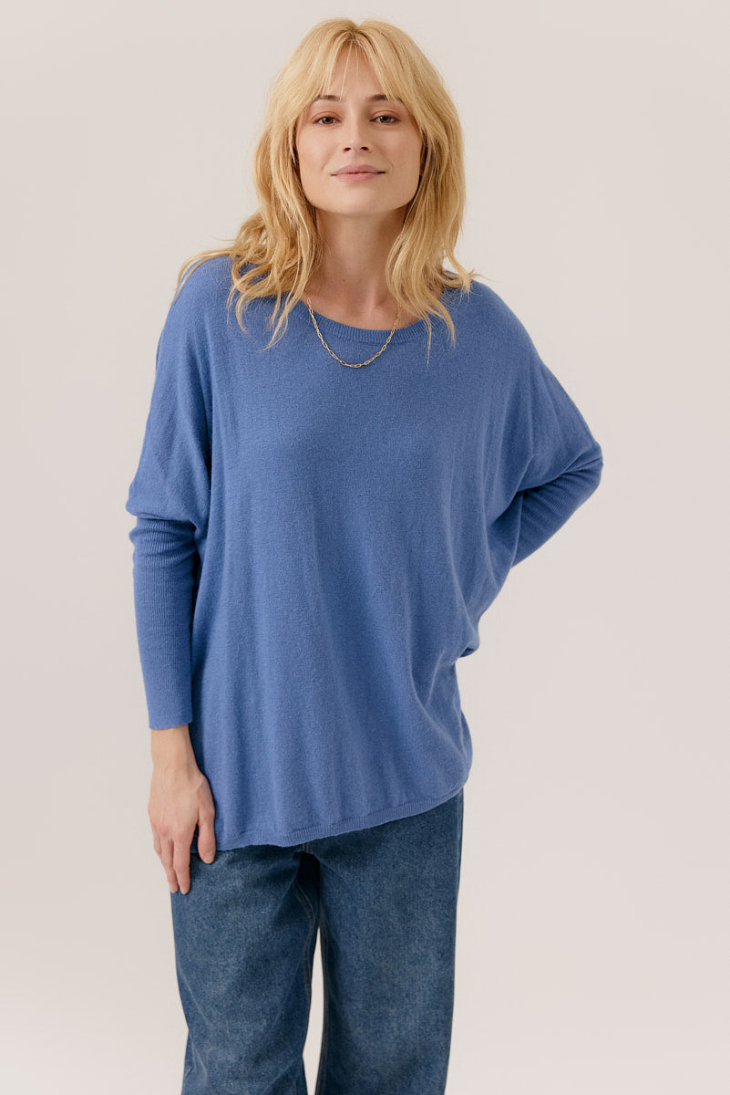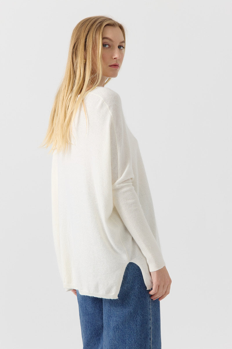 Pull col rond à manches longues. Coupe ample avec base arrondie. Tissu léger et doux.
