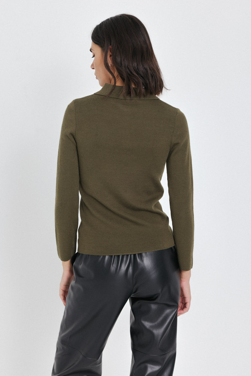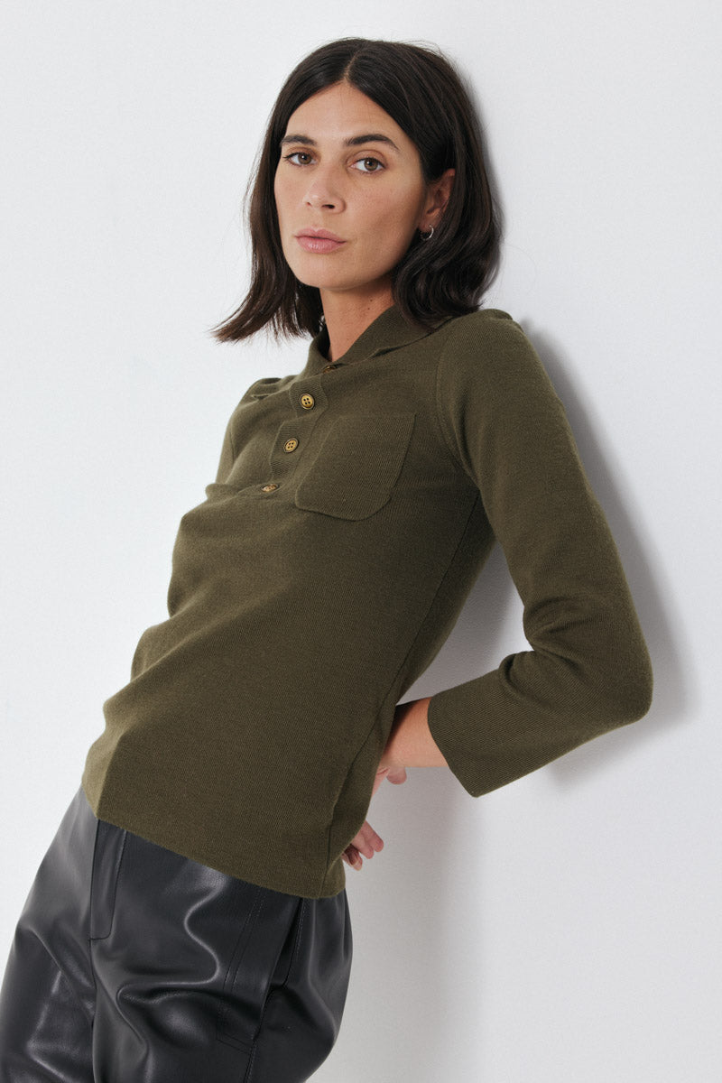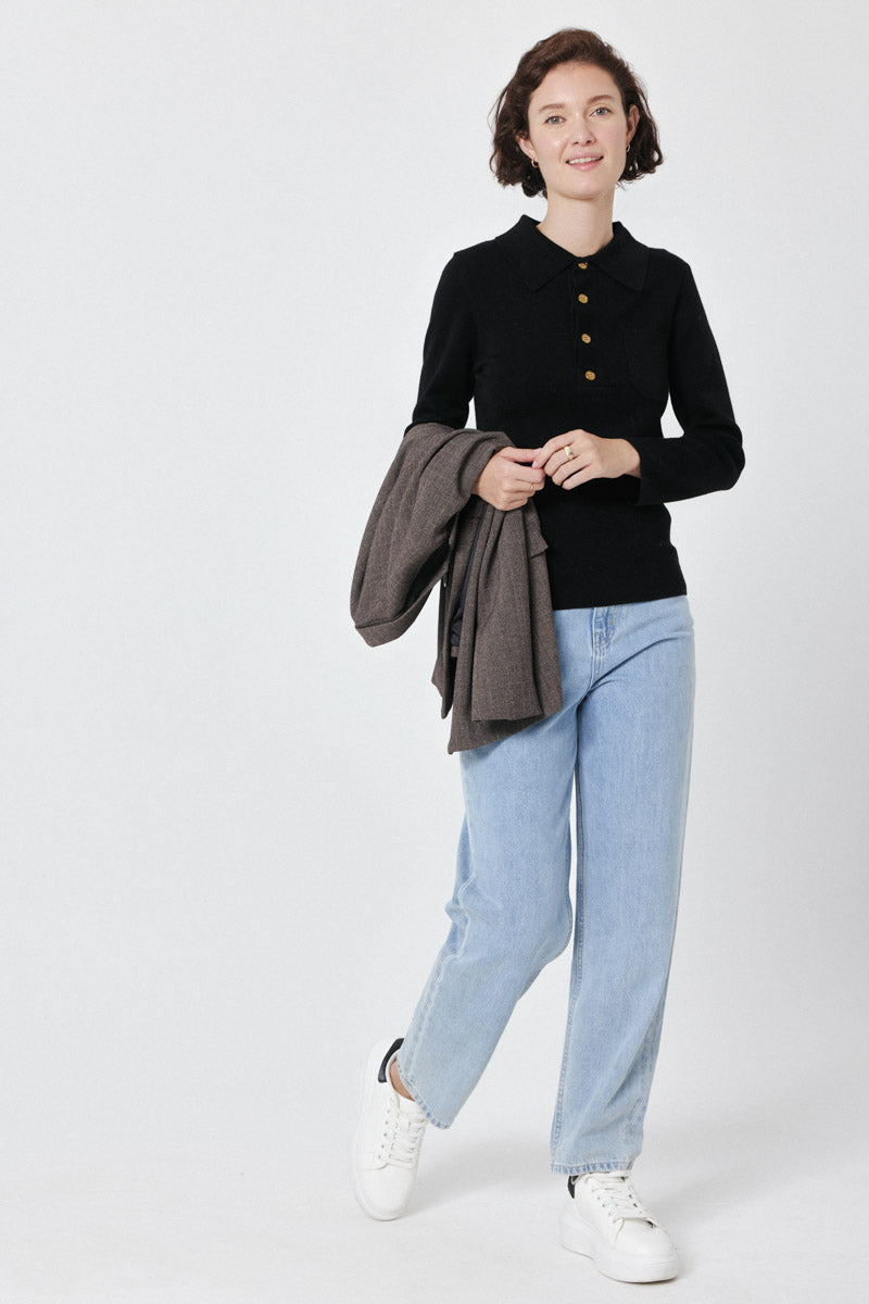 Pull à col polo avec boutons dorés. Élégance décontractée.