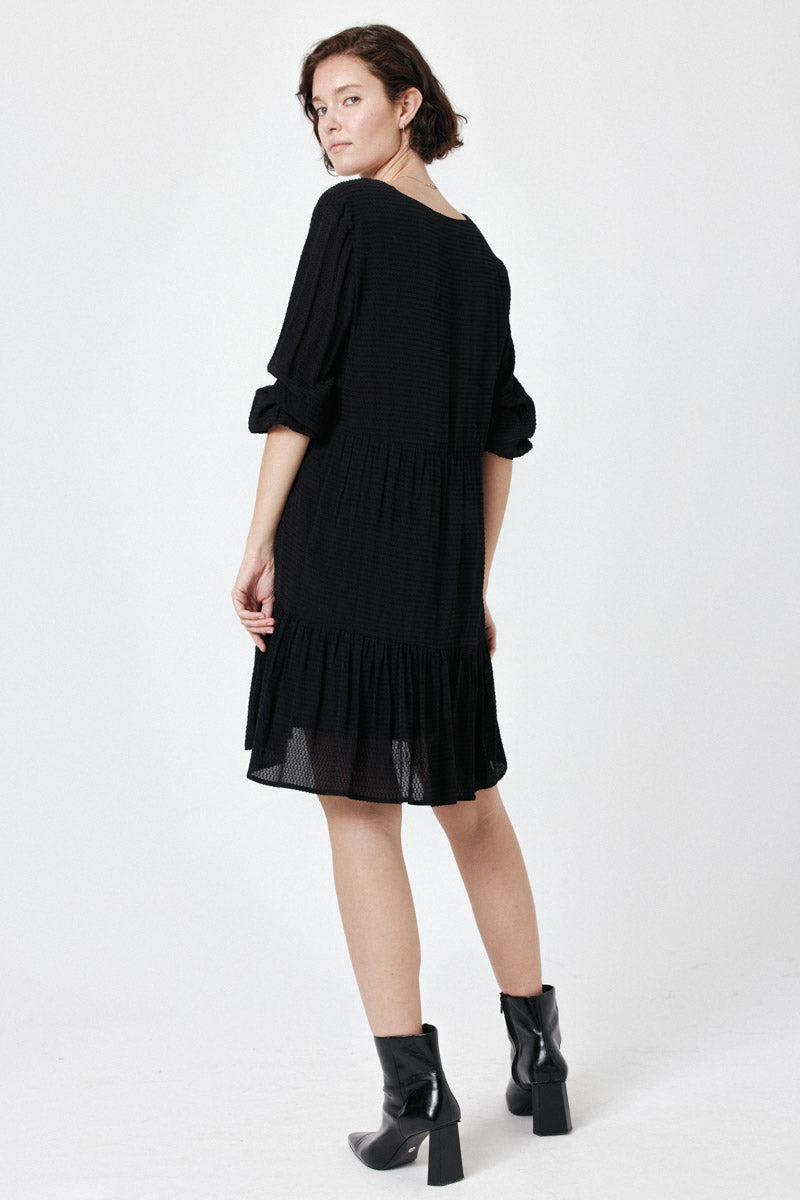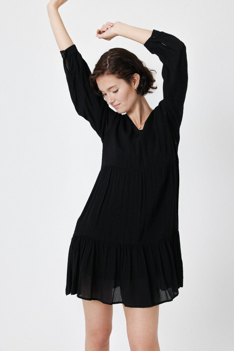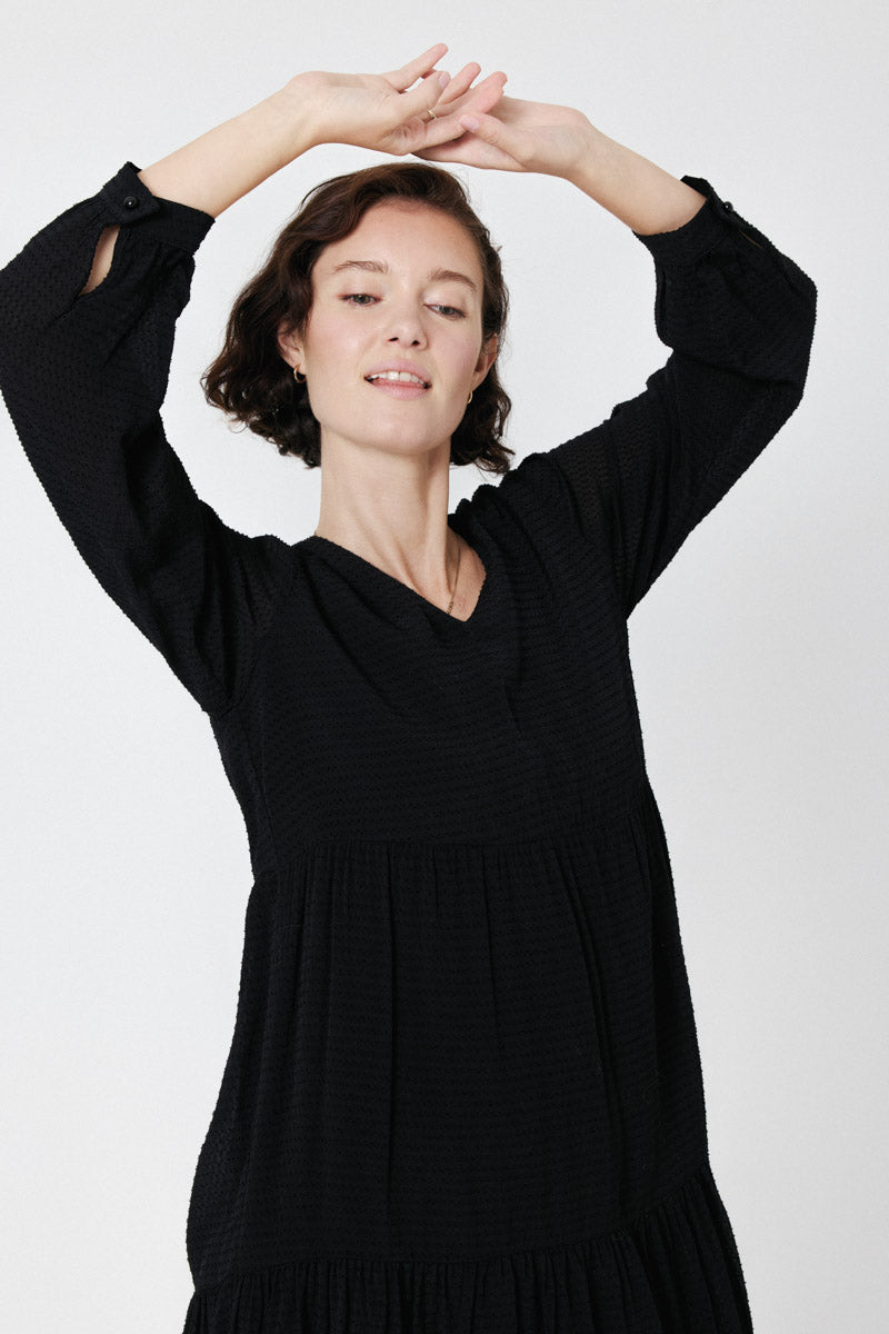 Robe ample avec une texture subtile. Confortable et élégante pour toutes les occasions. Un indispensable de la saison.