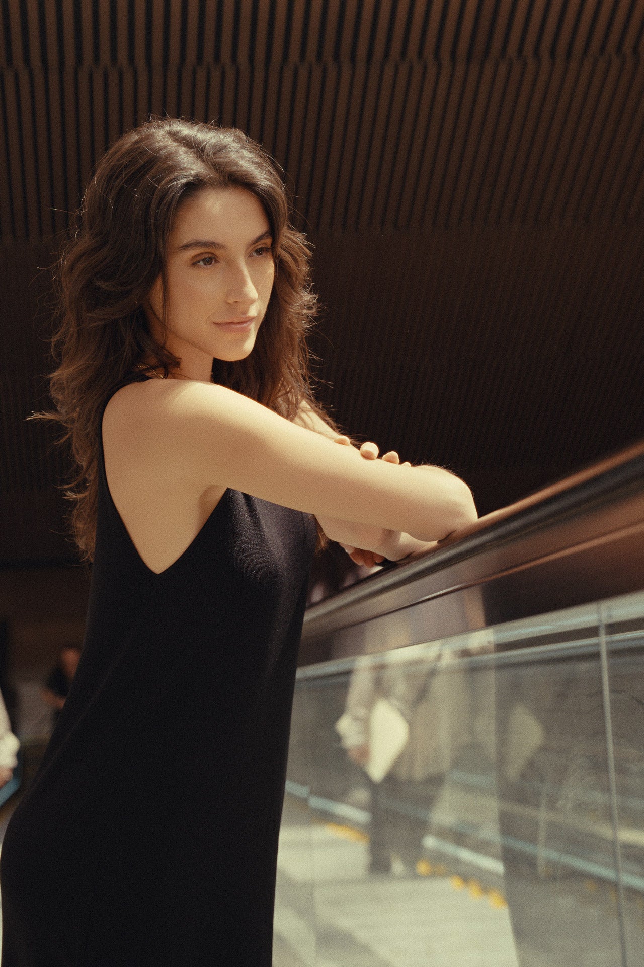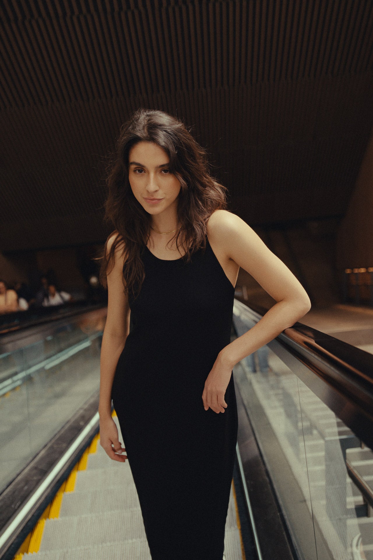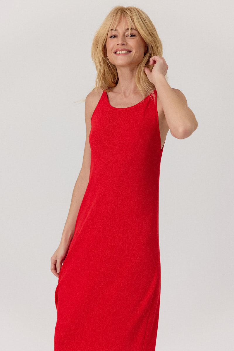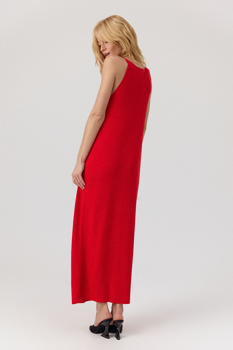 Robe longue minimaliste au design épuré. Son encolure dégagée et sa coupe droite offrent une silhouette élégante et moderne, idéale pour une allure sophistiquée et effortless.