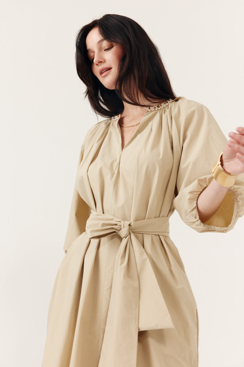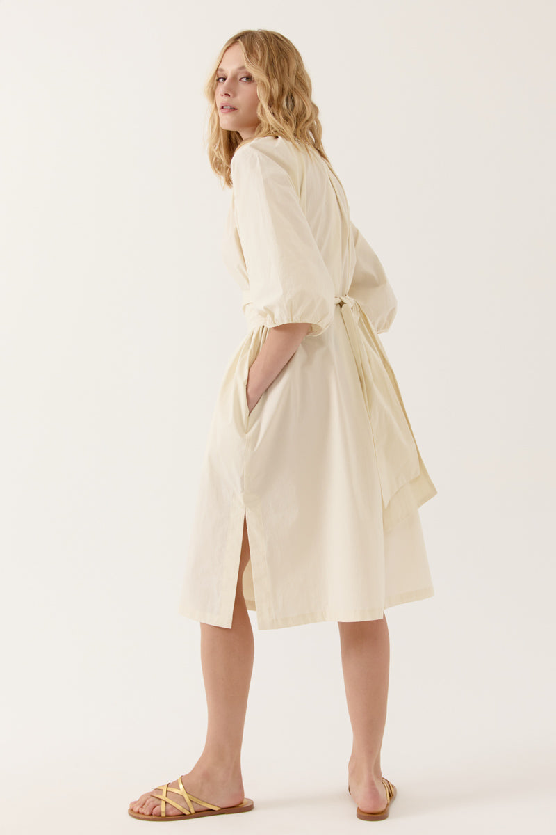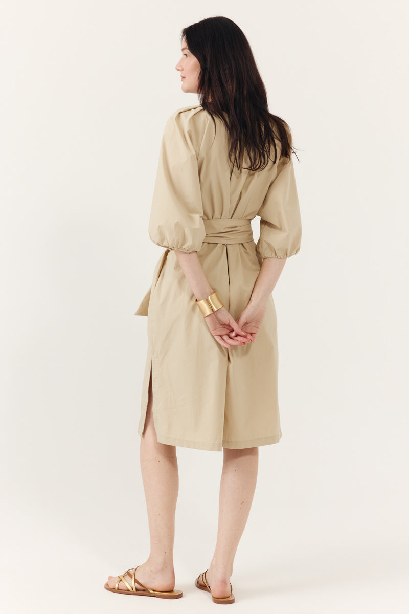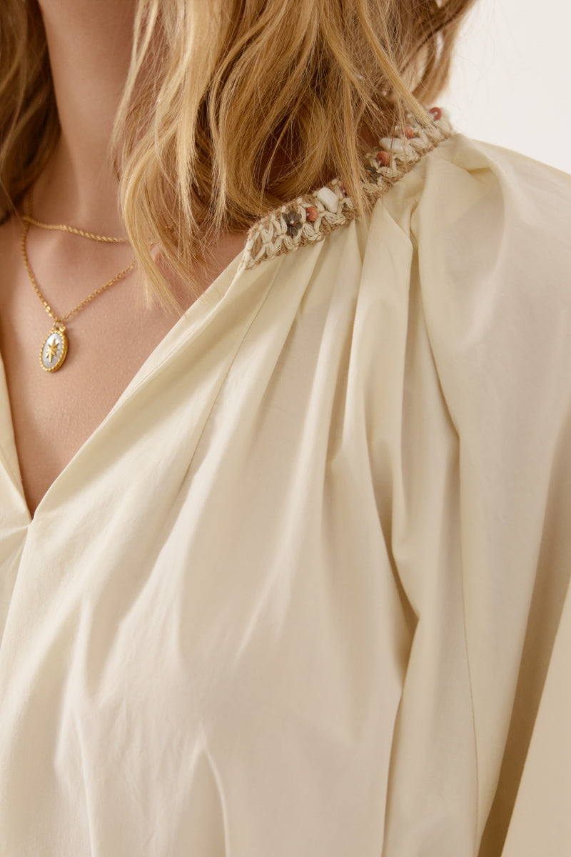Manches 3/4 légèrement bouffantes avec poignets élastiqués.