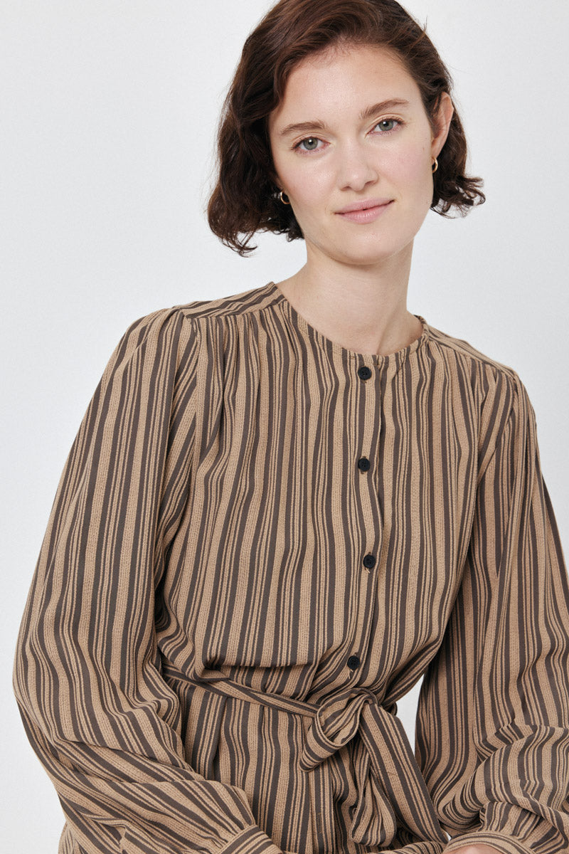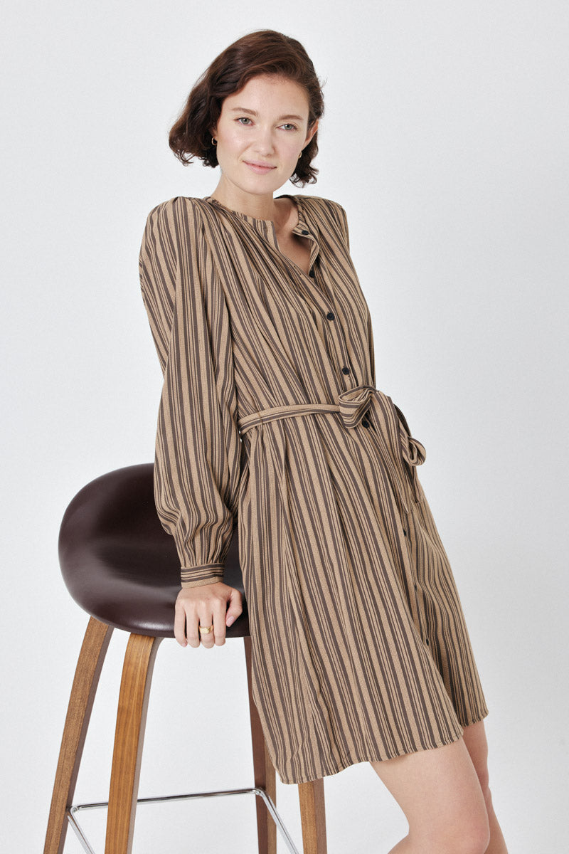 Robe à rayures avec ceinture, idéale pour un look casual chic.