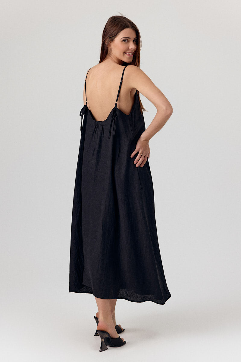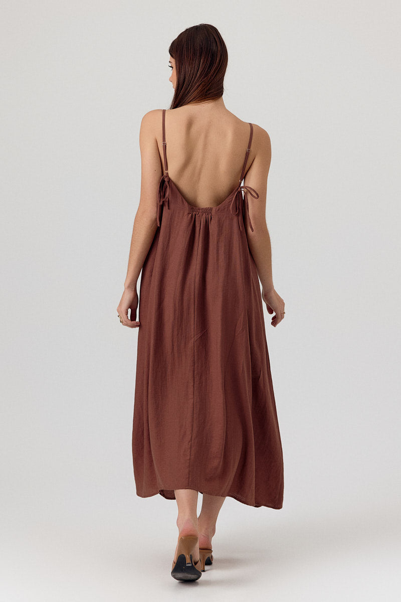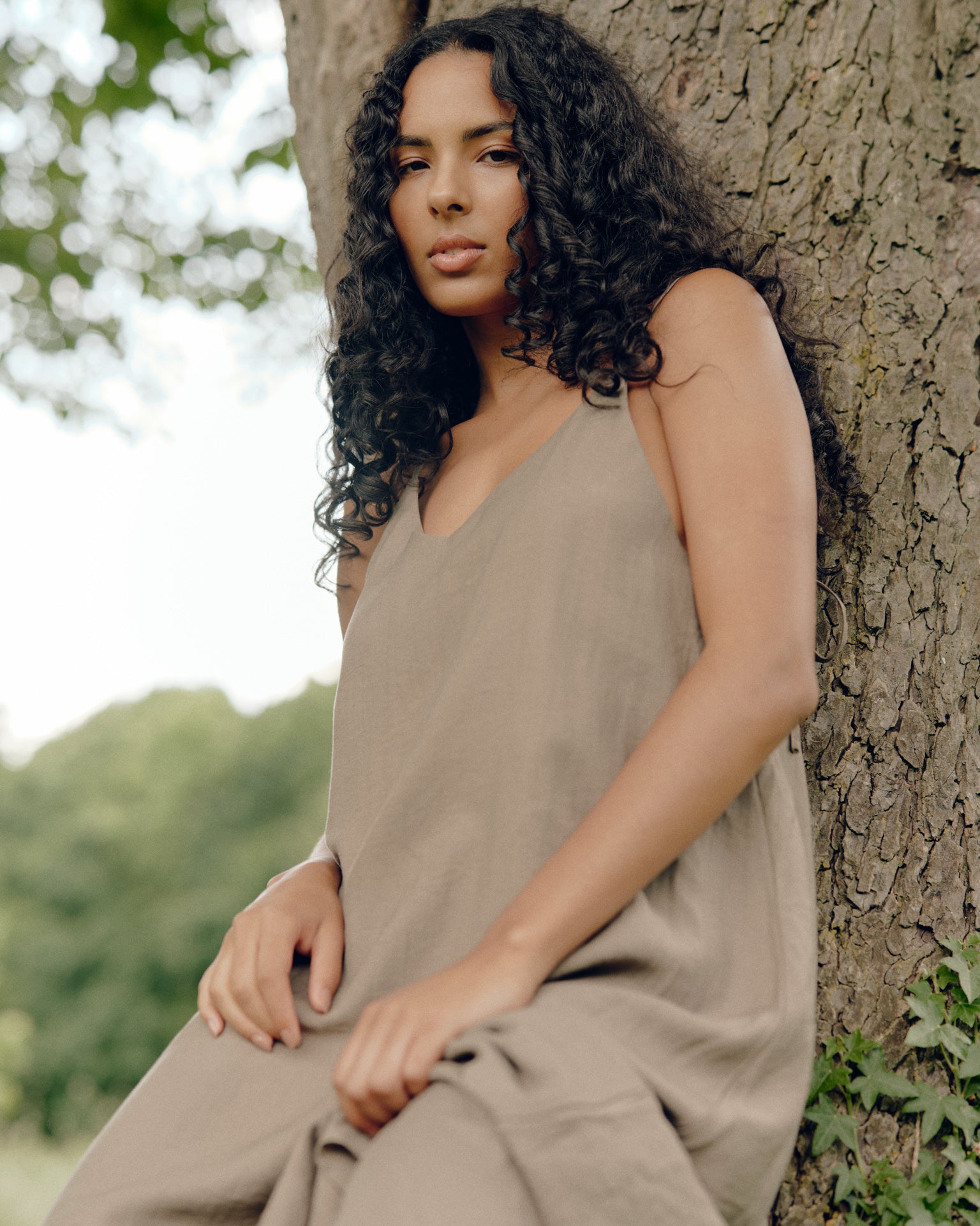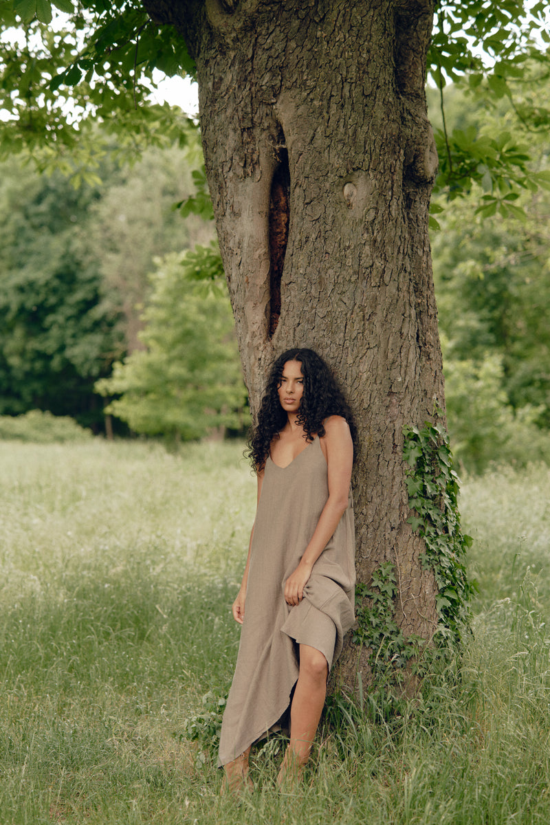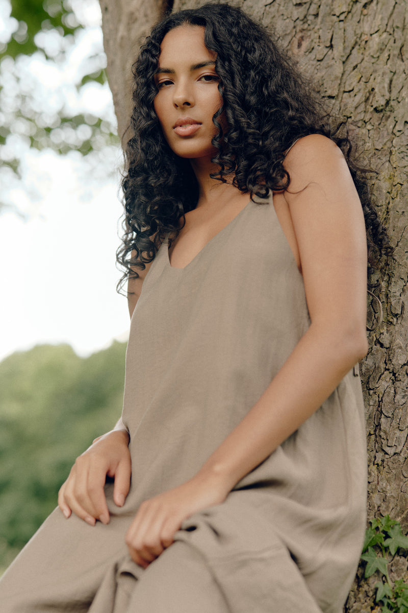 Robe longue légère et vaporeuse avec une coupe épurée. Les fines bretelles et le décolleté en V accentuent sa féminité. Une pièce parfaite pour des occasions spéciales ou des journées estivales.