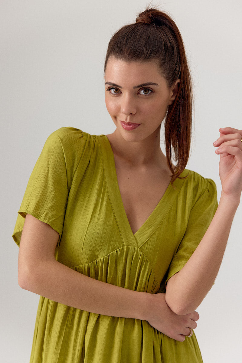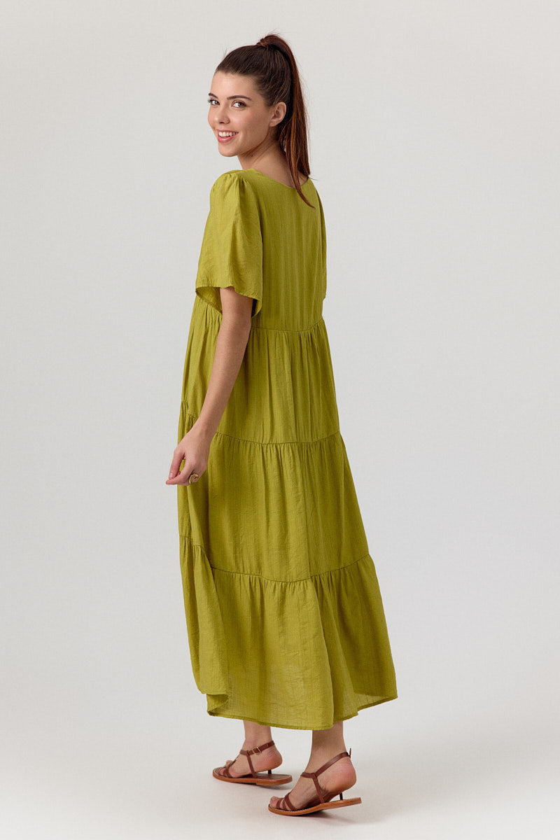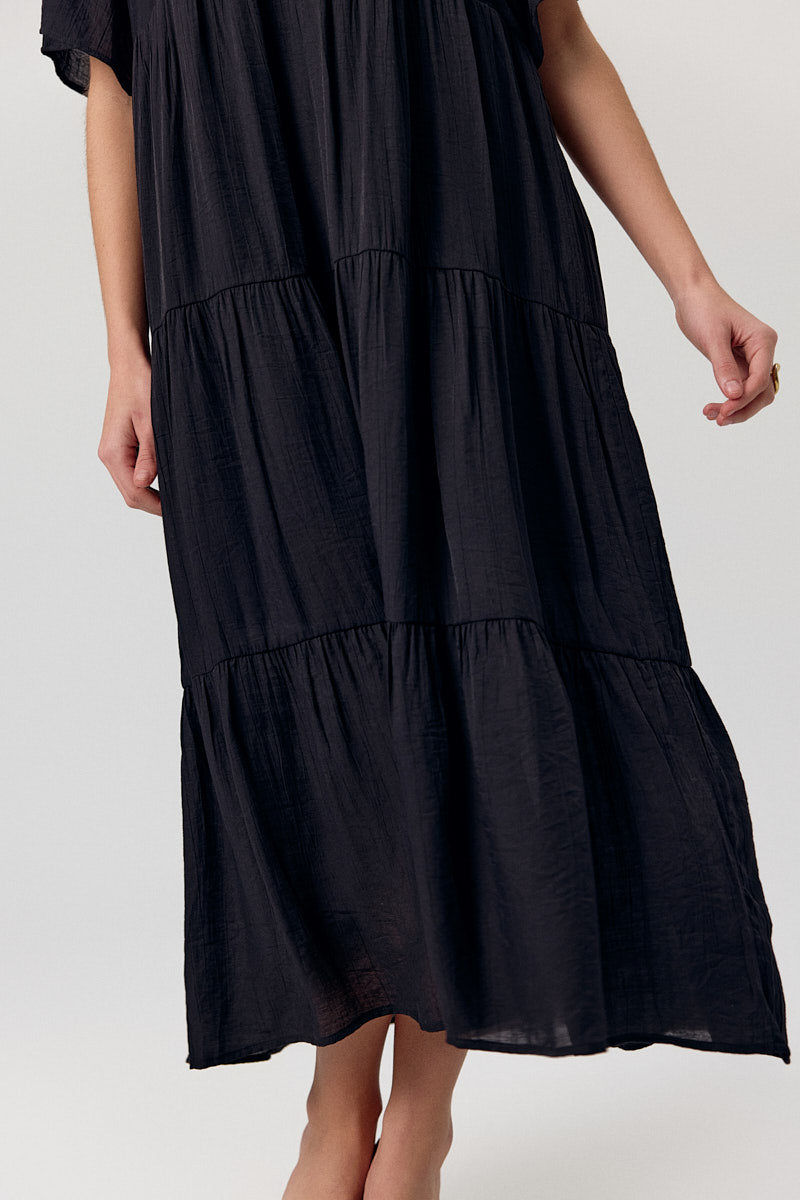 Découvrez cette robe élégante et fluide, idéale pour une tenue décontractée ou une occasion spéciale. Ses détails soignés et sa coupe flatteuse en font un indispensable de votre garde-robe estivale.
