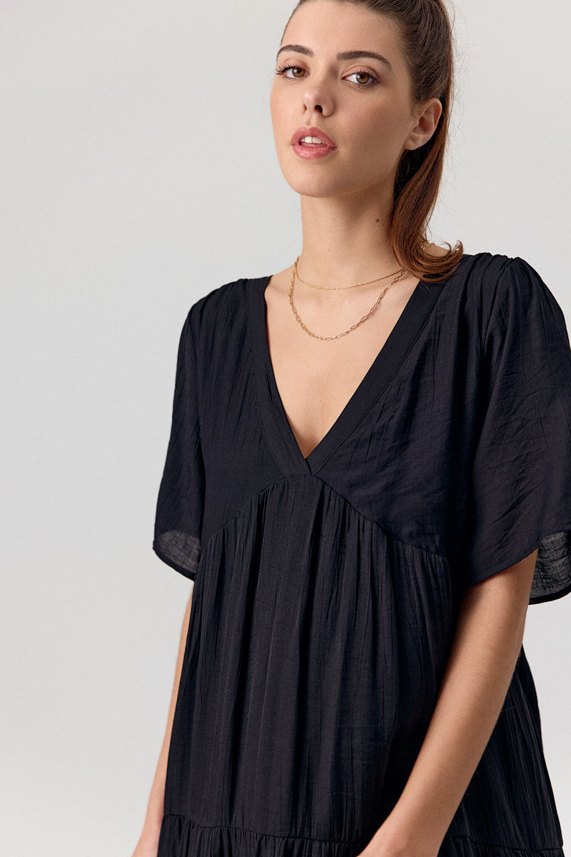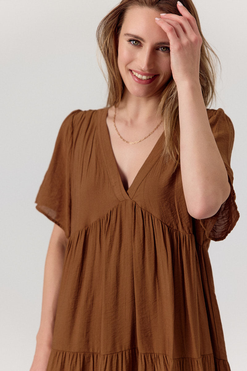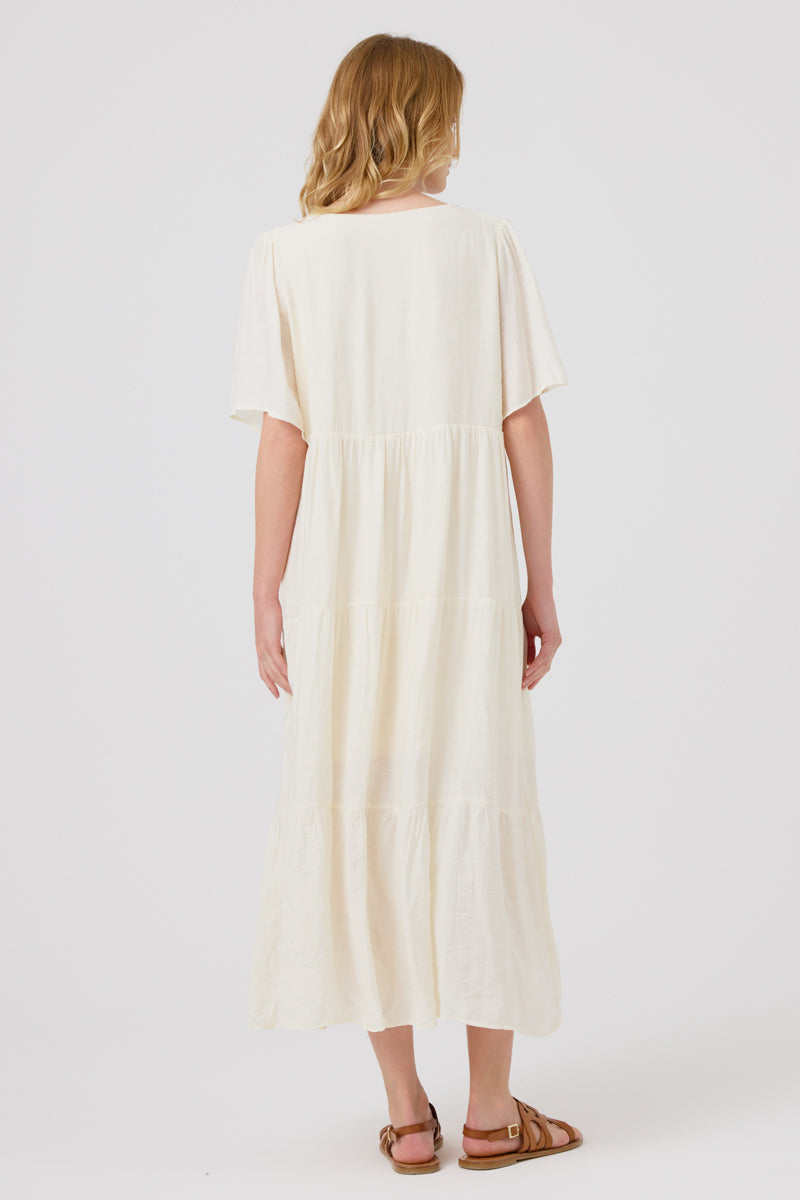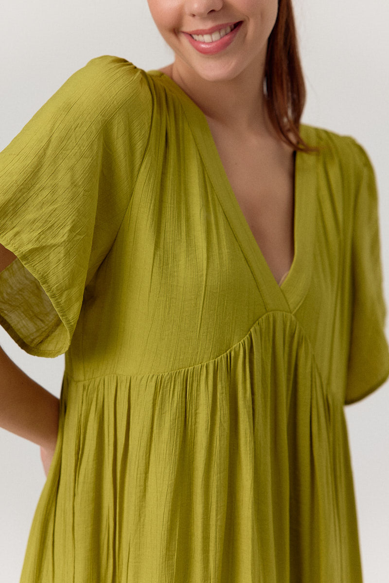 Découvrez cette robe élégante et fluide, idéale pour une tenue décontractée ou une occasion spéciale. Ses détails soignés et sa coupe flatteuse en font un indispensable de votre garde-robe estivale.