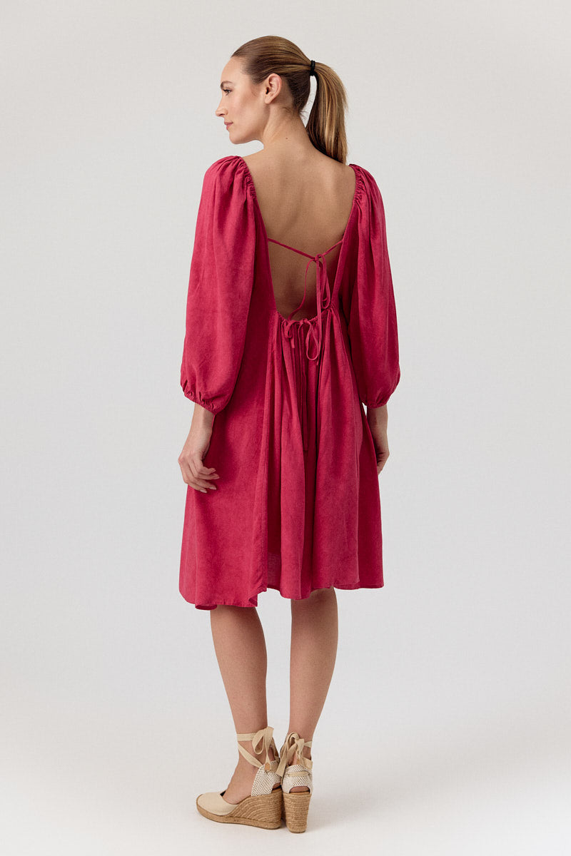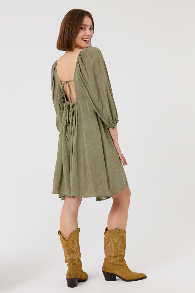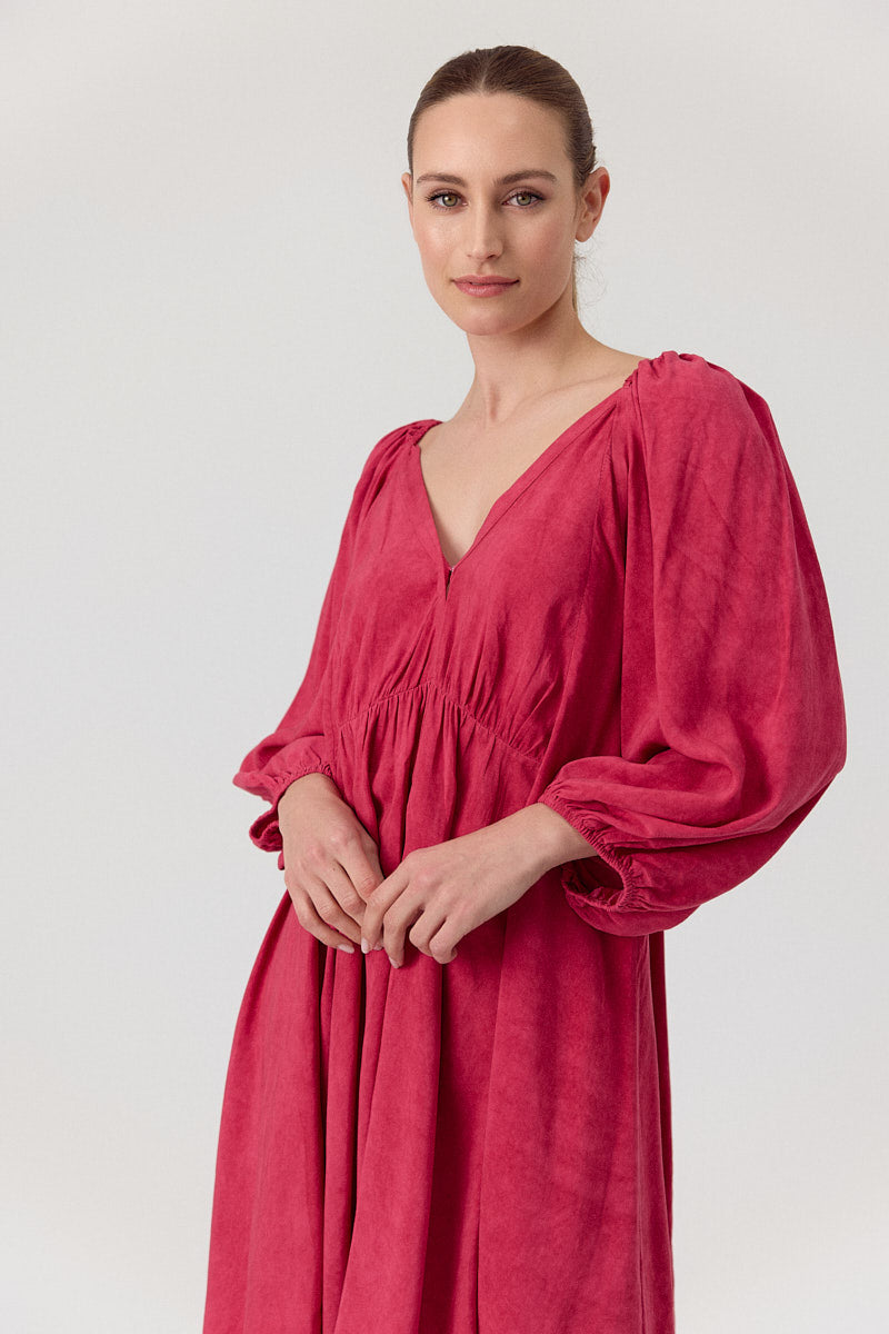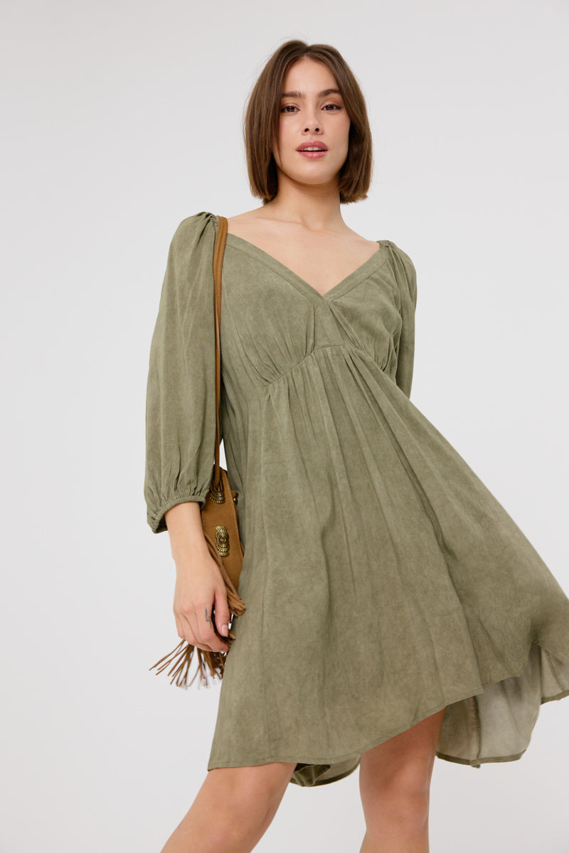 Une robe ample avec des manches bouffantes et un décolleté en V plongeant. Idéale pour un look bohème chic, cette pièce offre une silhouette fluide et une allure sophistiquée.