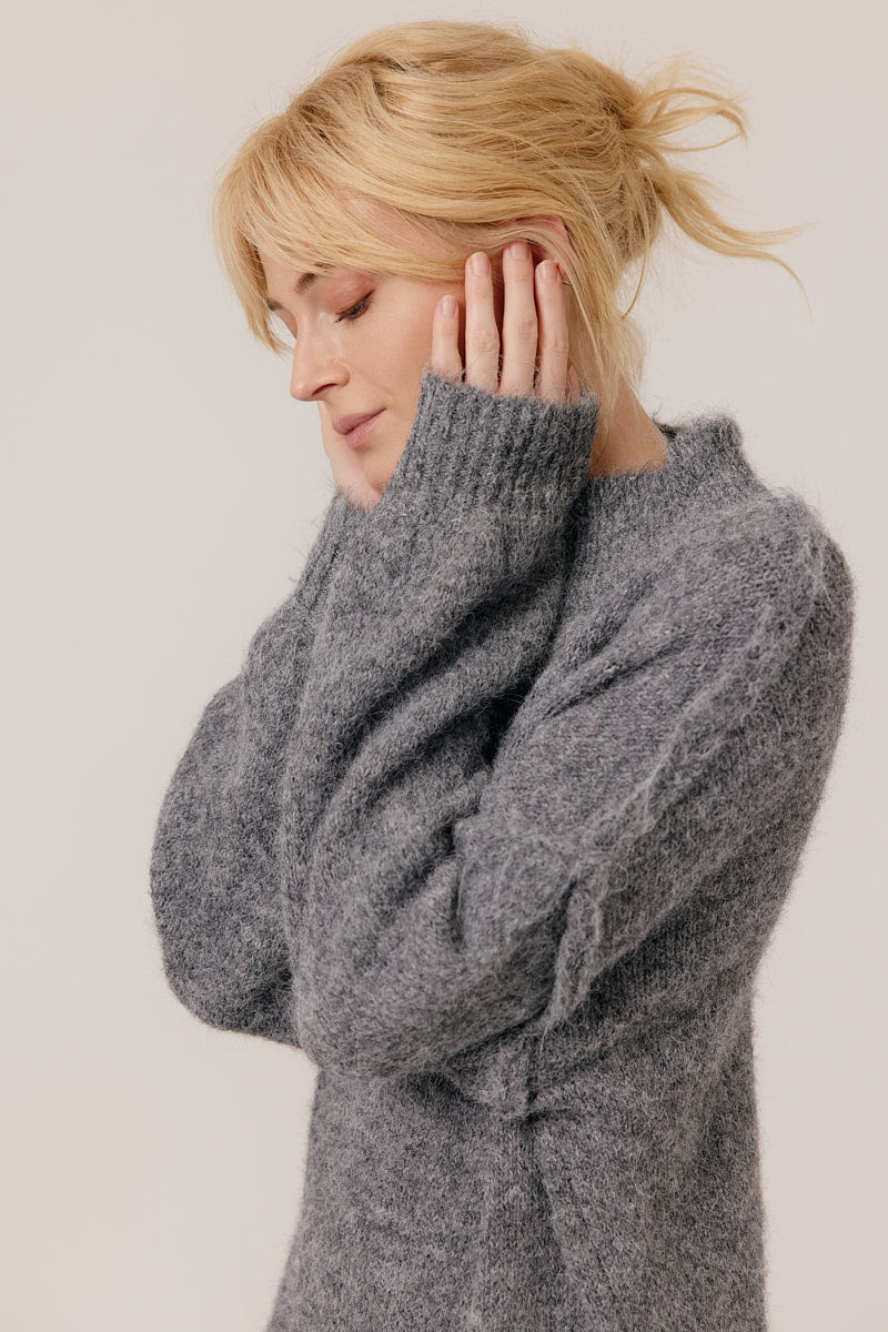 Robe pull effet duveteux, coupe ample et manches longues pour un look cocooning ultra doux.