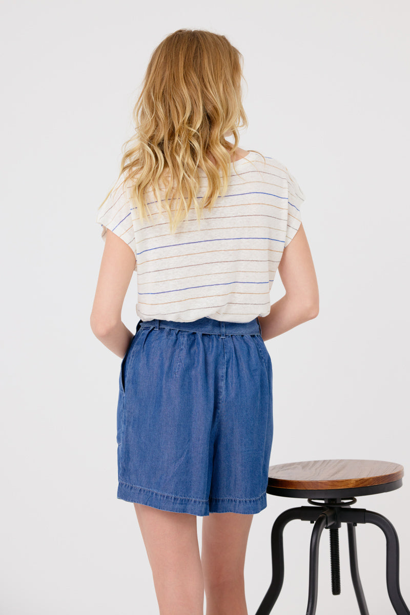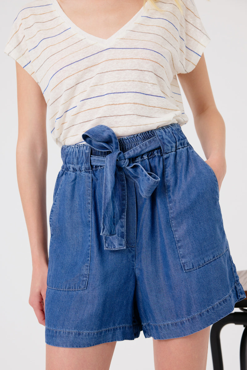Ce short revisite le classique avec une ceinture nouée et des poches latérales. Son design intemporel garantit une allure moderne et confortable.
