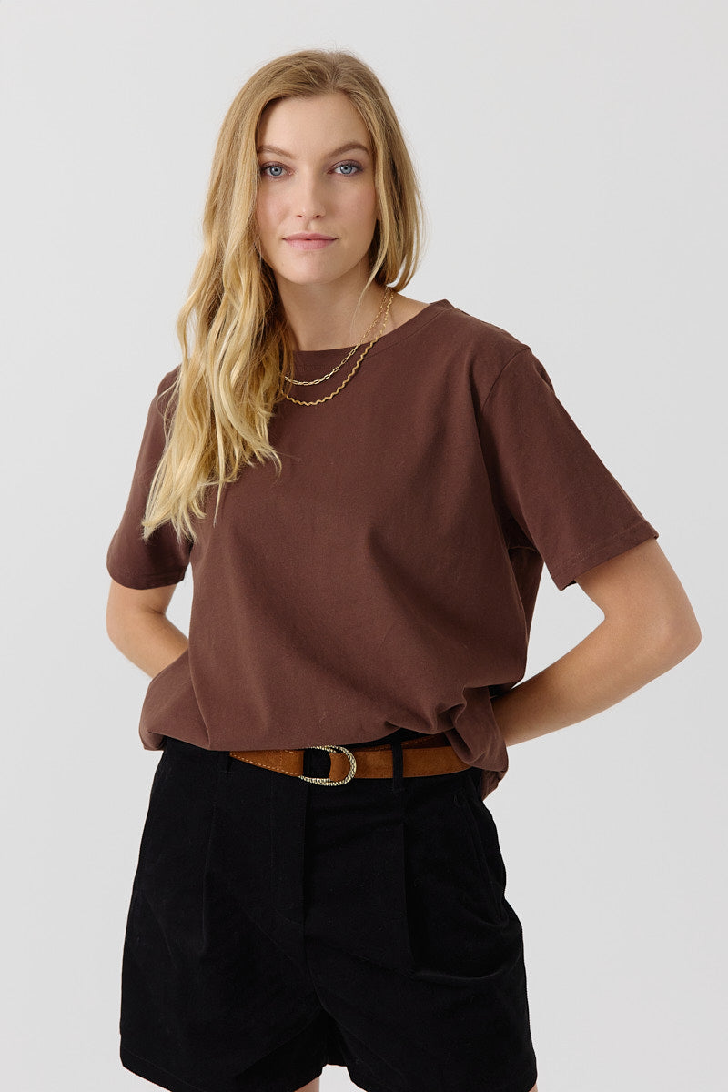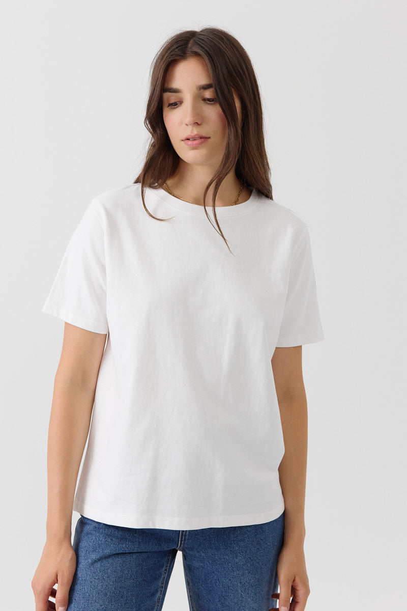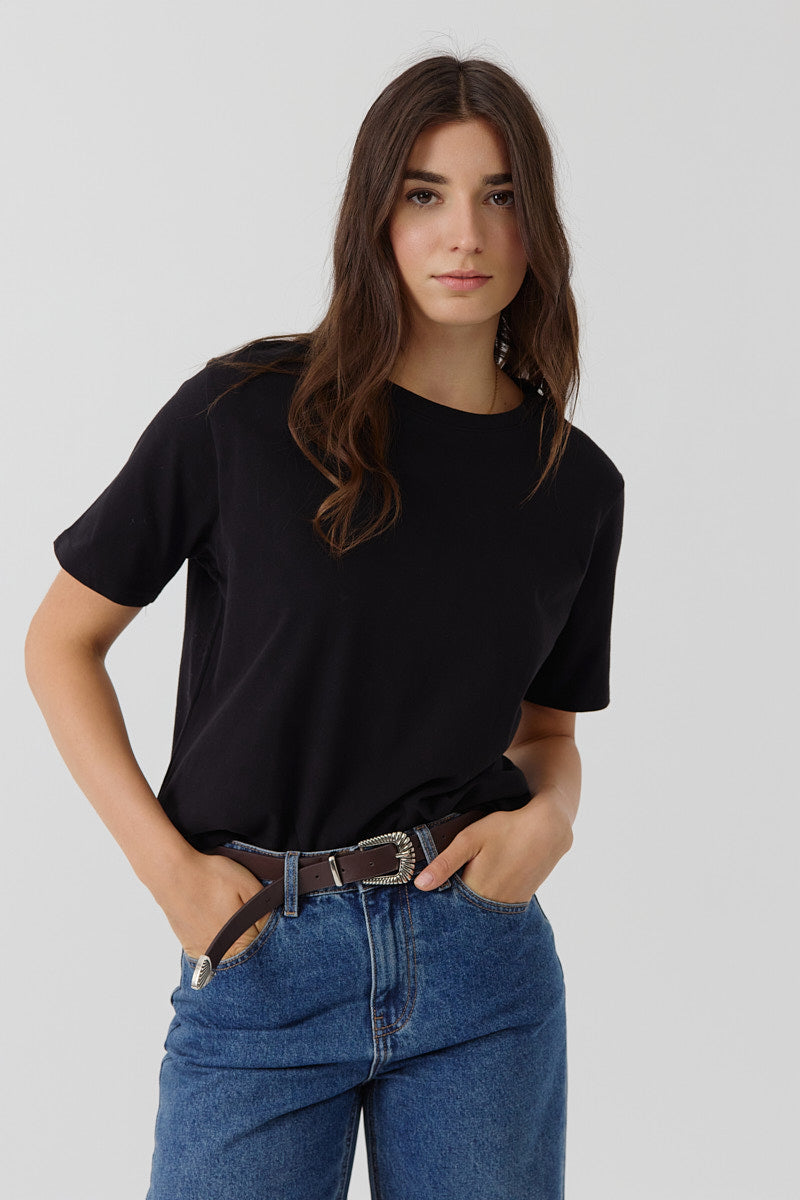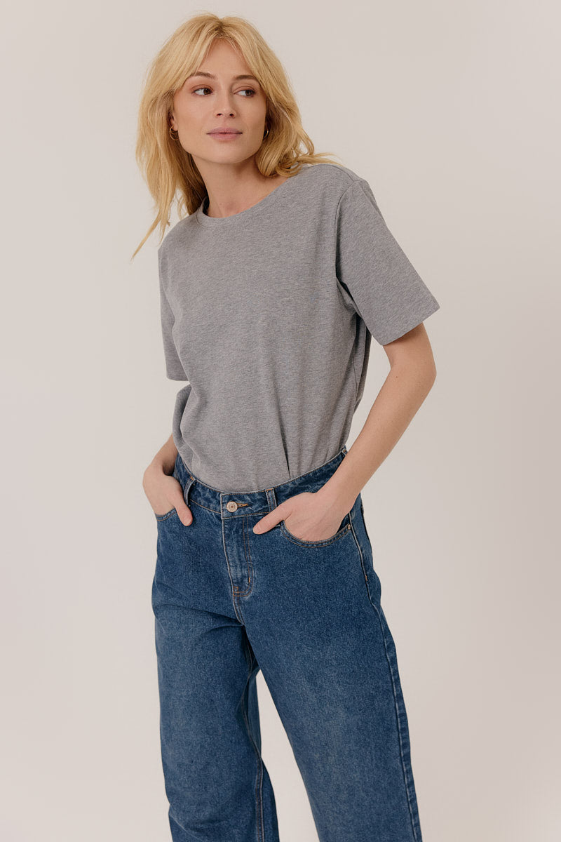 T-shirt chiné à col rond et manches courtes. Coupe droite et minimaliste. Un essentiel basique et confortable du vestiaire.