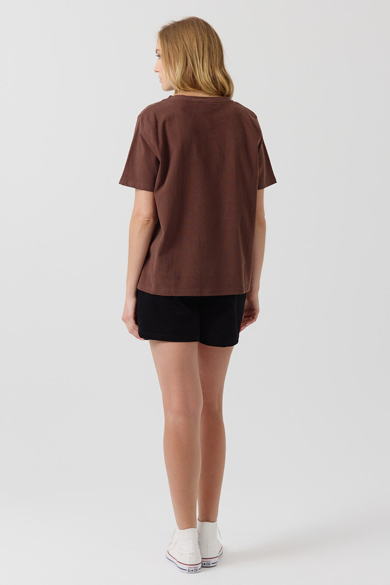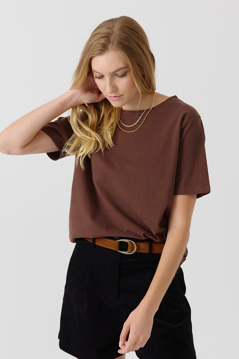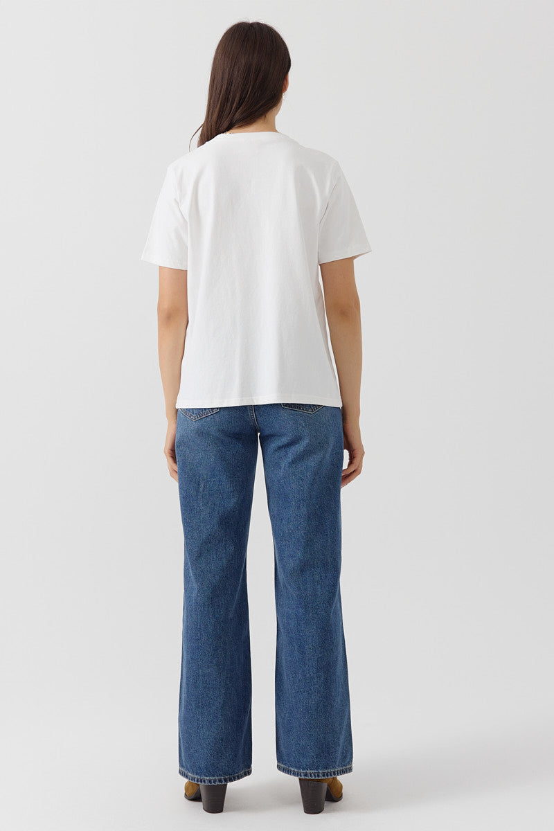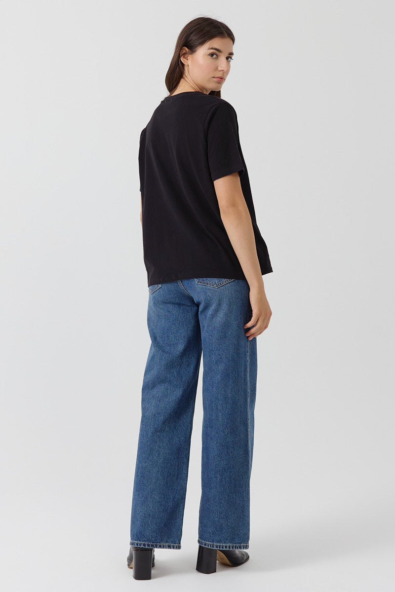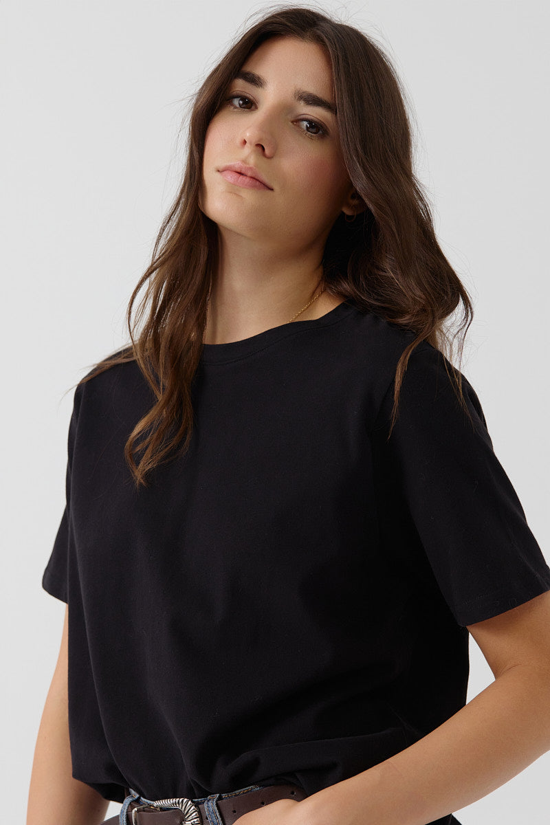 T-shirt chiné à col rond et manches courtes. Coupe droite et minimaliste. Un essentiel basique et confortable du vestiaire.