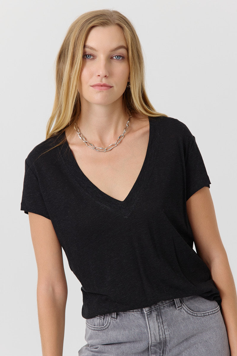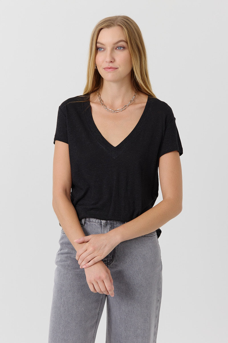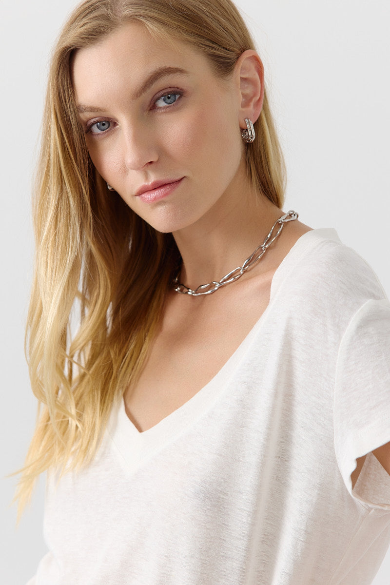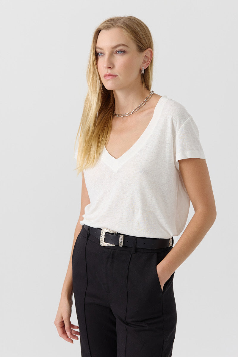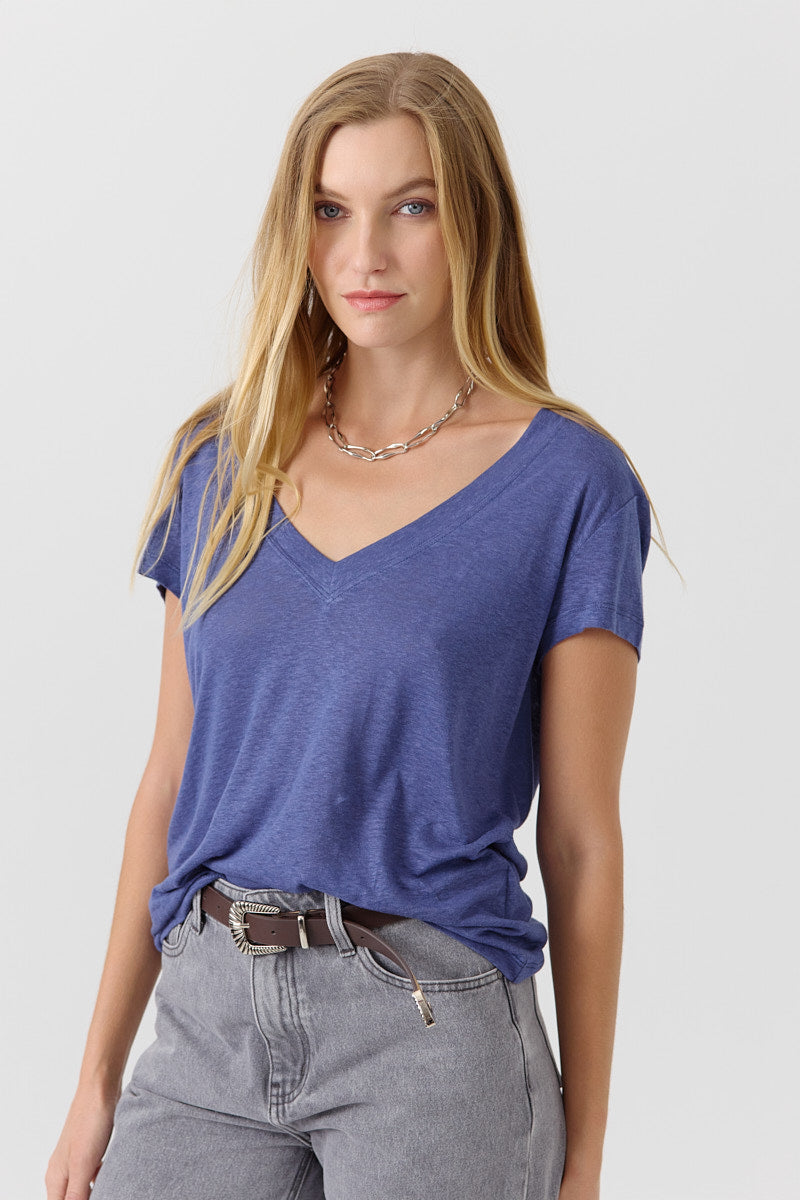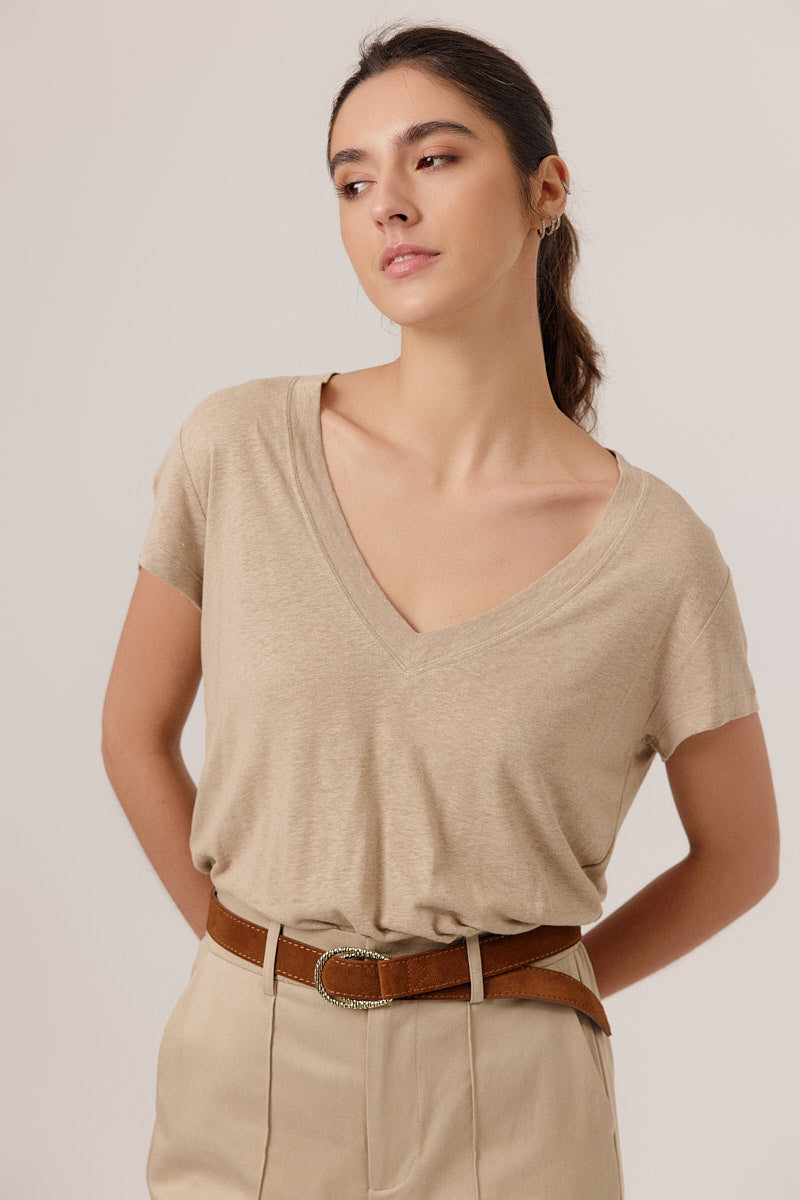 T-shirt à col en V, conçu pour un style simple et confortable. Un basique indispensable pour une tenue relax et estivale.
