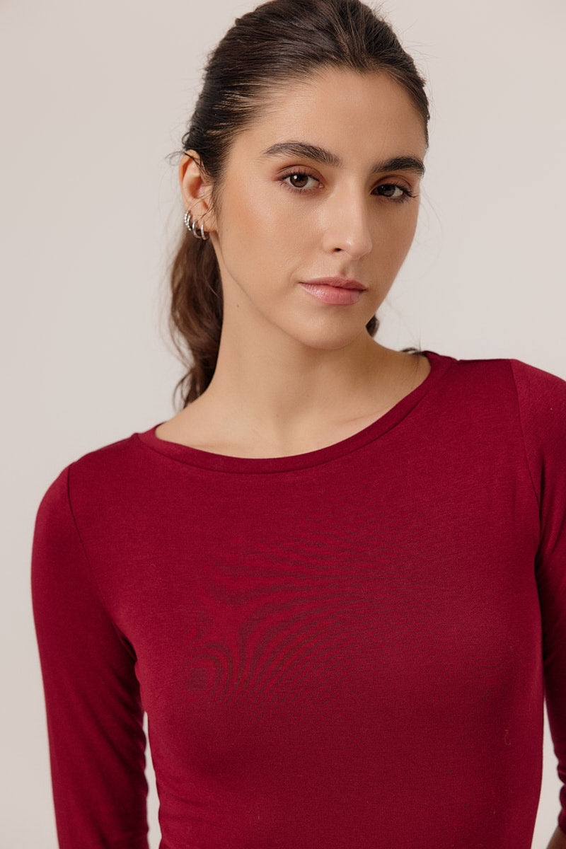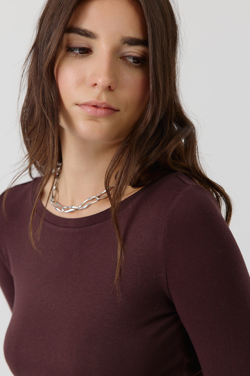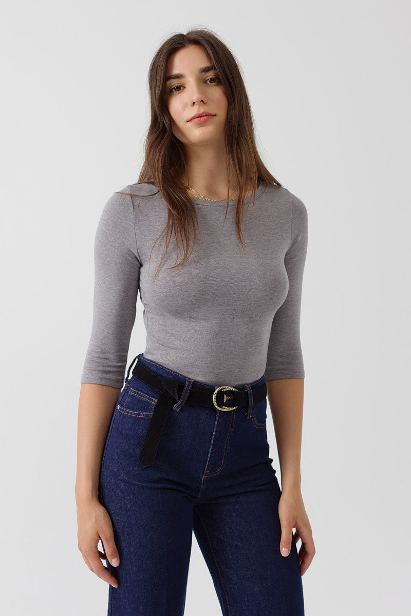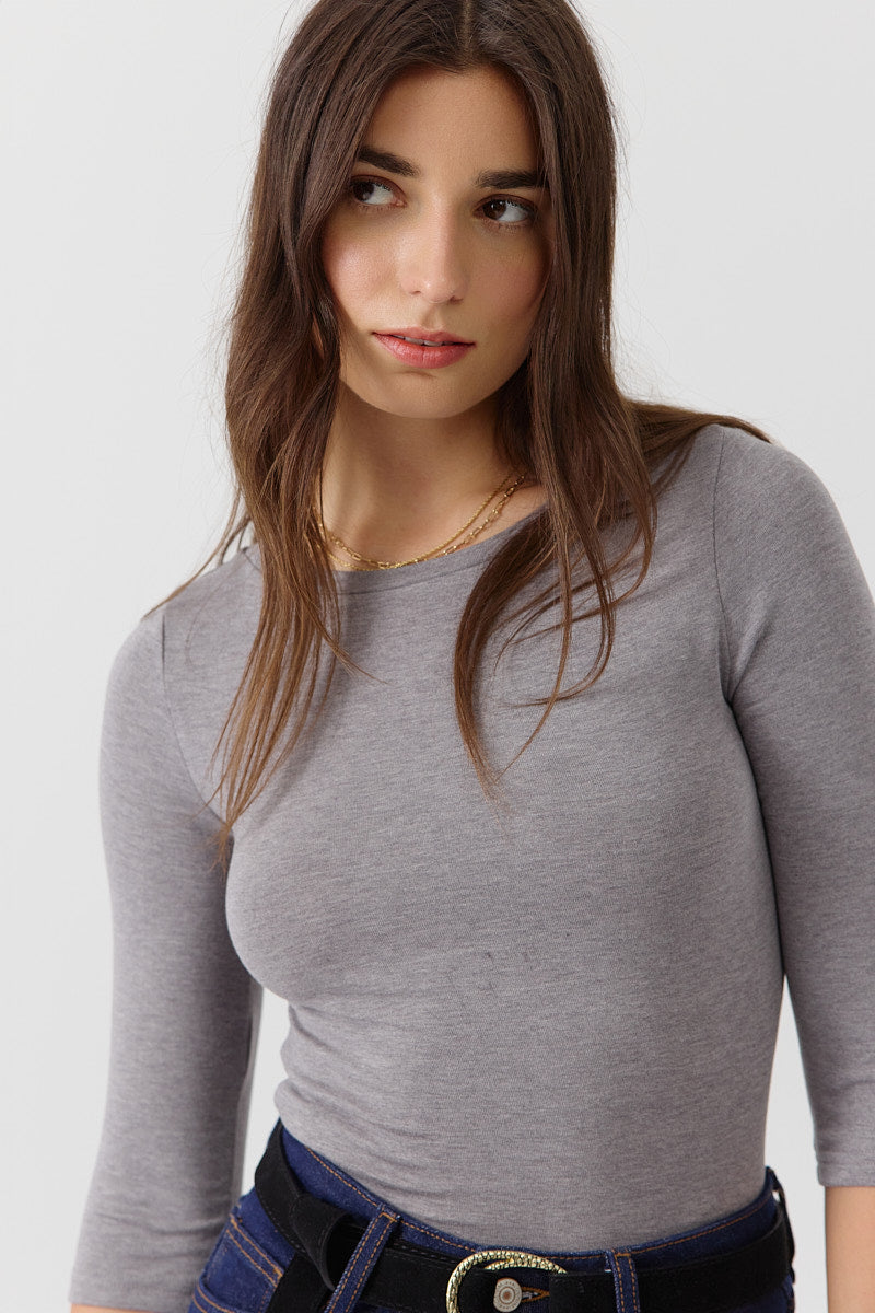 Top à manches ¾ et col rond. Coupe ajustée, en jersey stretch doux. Un basique élégant à porter seul ou sous un blazer.