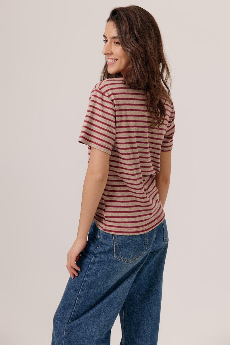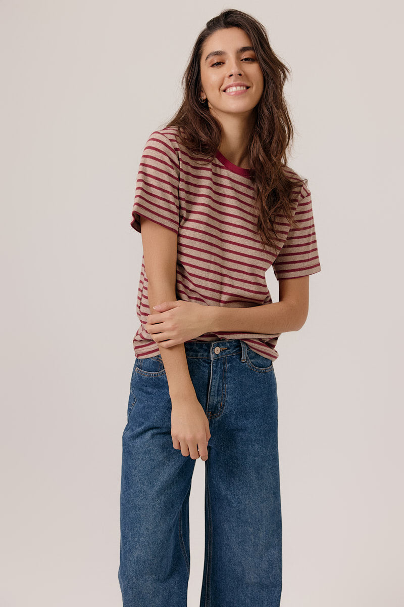 Tee-shirt rayé manches courtes, col rond contrasté.