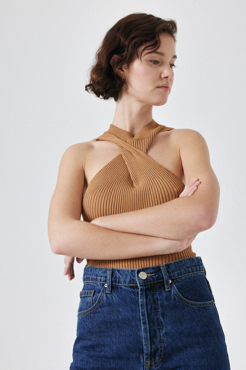 Top sans manches avec détail de croisement. Original et tendance, parfait pour un look unique.