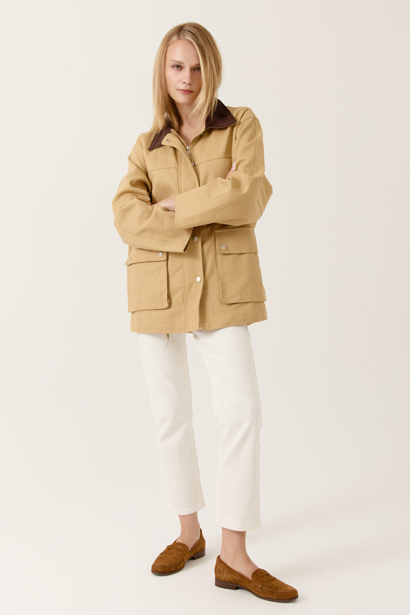 - Col contrasté en velours côtelé