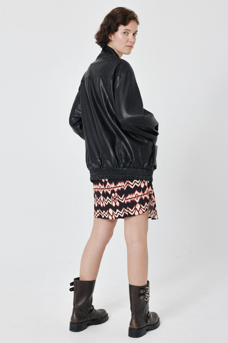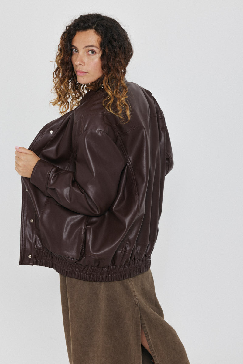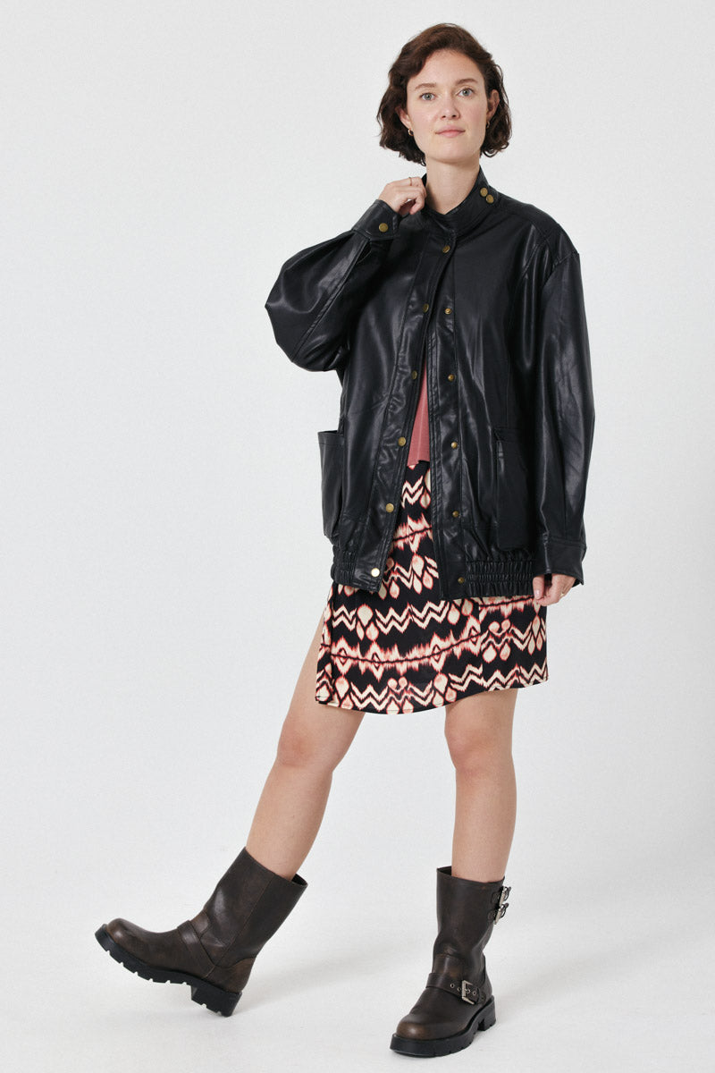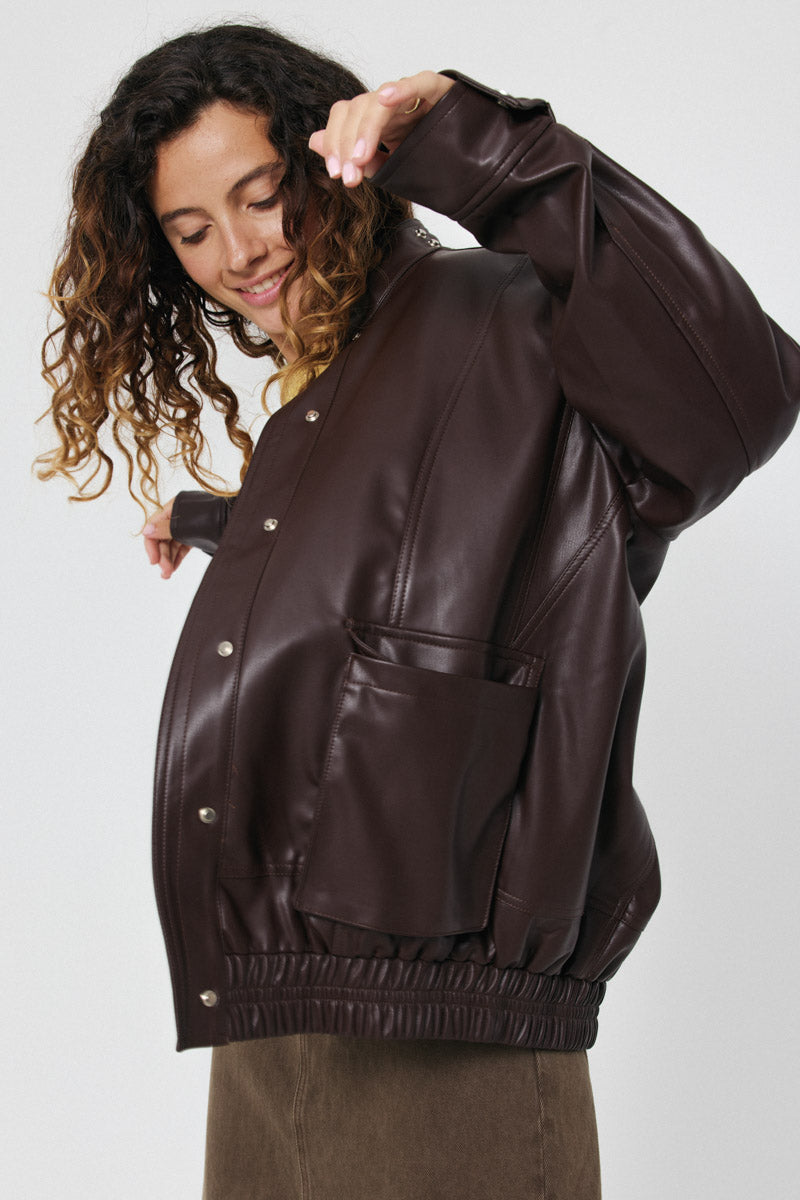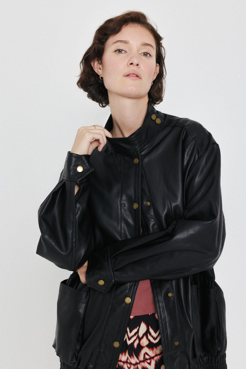 Blouson en cuir élégant et fonctionnel avec ses poches plaquées, sa fermeture à bouton-pression et son col montant.