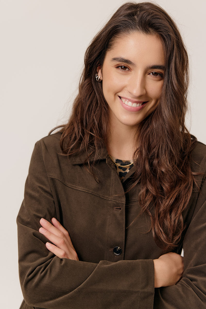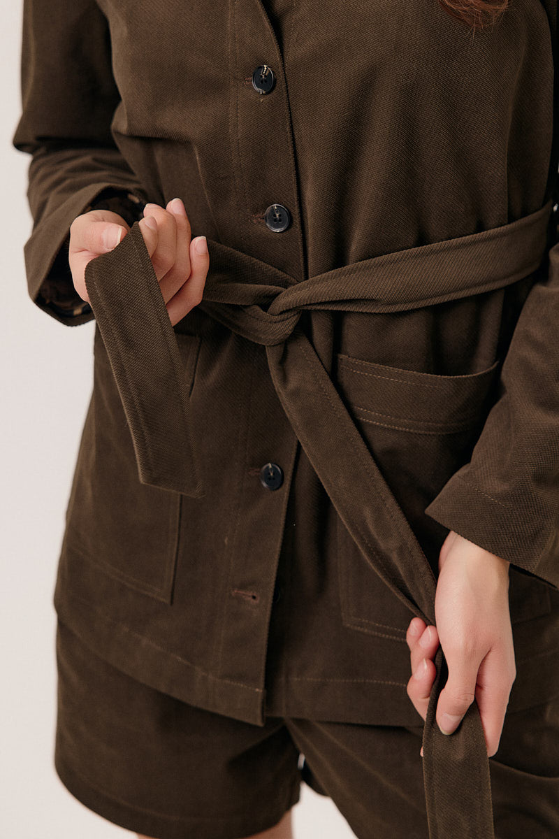 Veste droite à l’esprit saharienne, fermée par des boutons et ceinturée à la taille. Elle est dotée de grandes poches plaquées pour un style pratique et décontracté, idéal à porter au quotidien.